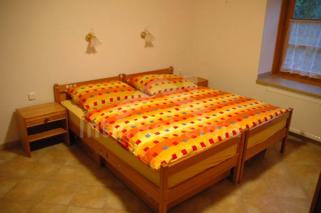 You inhabit a separate part of the former farmhouse with its own fenced garden and a private entrance, you have a complete privacy. All rooms are in one level, apatment is completely renovated and very well and comfortably furnished. Entrance, kitchen with dining table for 3 people, electric stove with ceramic hob, refrigerator, kettle and microwave. Bedroom with one double and one single bed, satellite TV. Possibility of one extra bed. Nice bathroom with shower and toilet. Central gas heating. There is own fenced garden, garden furniture and a portable grill at disposal. Own parking on a driveway.
