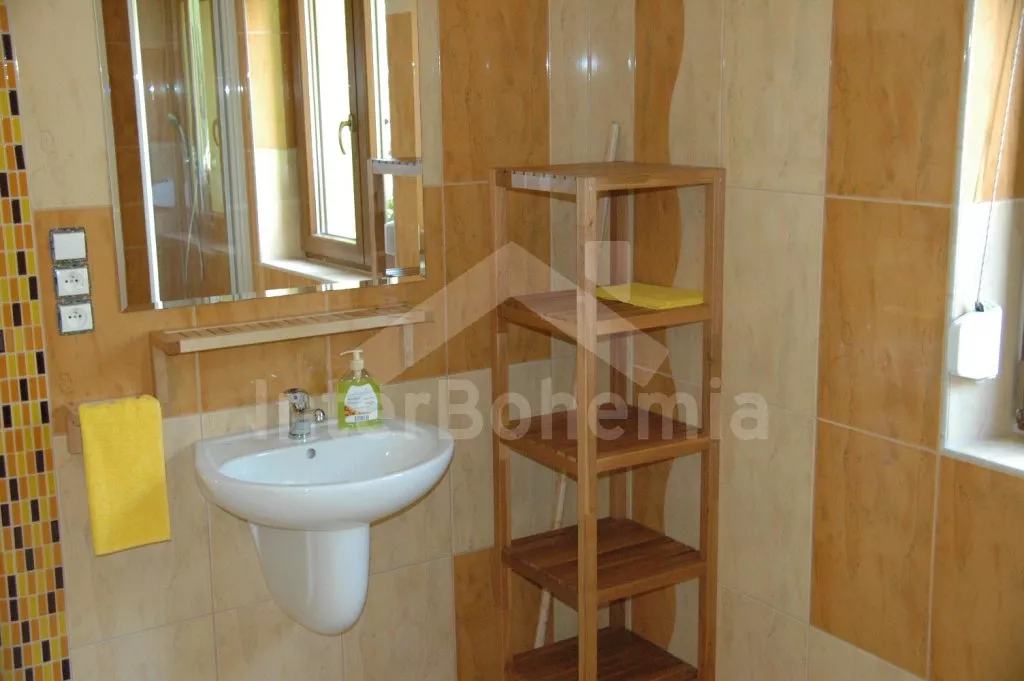 Distances: Basic food, restaurant and tennis court 500 m. Supermarket, aquapark and other facillities (Ostrov) 4 km. Swimming, surfing, making water sports and boat rental – in ponds 3 and 6 km. Horse riding (Depoldovice) 6 km. Minigolf (Jachymov) 9 km, beautiful golf court (Karlovy Vary) 9 km. Fishing (permit needed) 3 km. The forest 500 m.