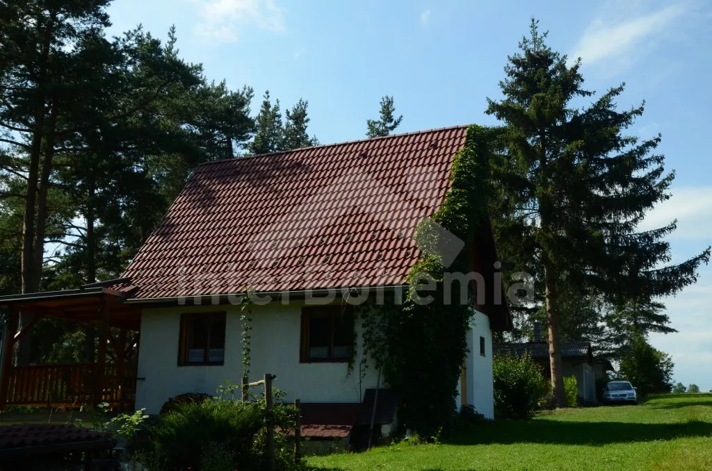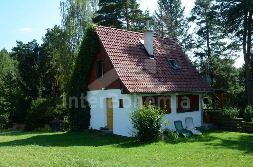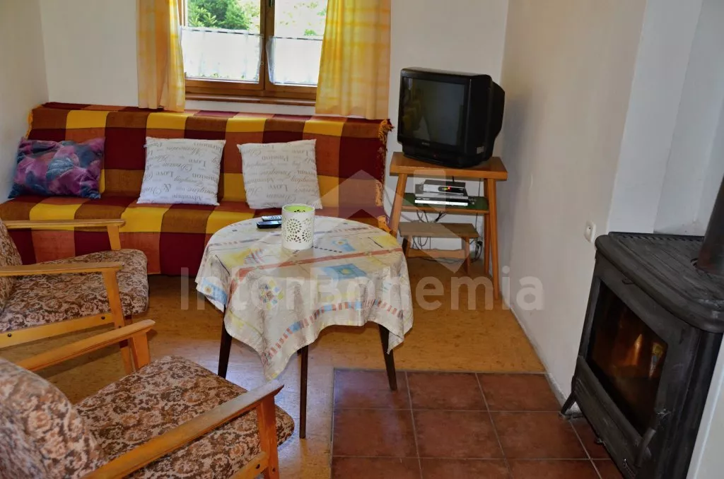 In South Bohemia, at the edge of small holiday village, in the vicinity of village Holubov, ca 11 km north of historical town Cesky Krumlov (protected by UNESCO). Bungalow stands in the foothills of hill Klet (1083 m above sea level) in protected area „Blansky Forest“. View of green. Shop 2 and 3 km, supermarket 3 and 18 km. Restaurants 2 and 3 km. Out-door pool and horse riding 2 km, tennis 1 km, golf 25 km. In-door pool and sauna 18 km. Forest 30 m.