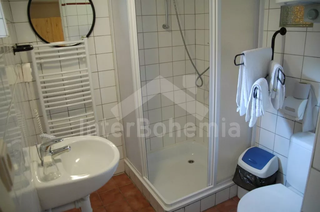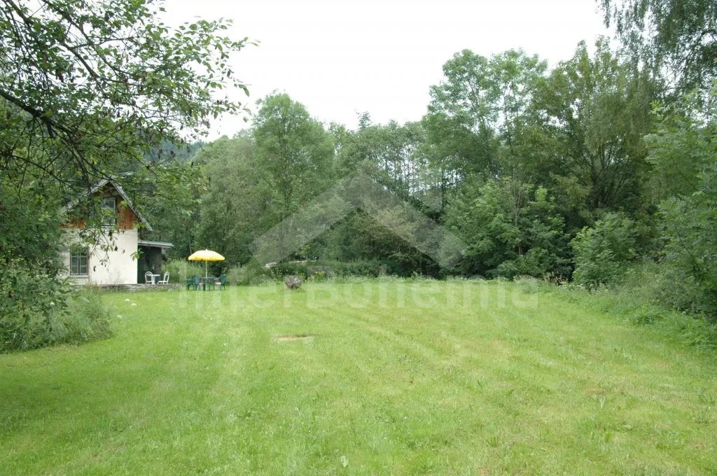 In the Bohemian Forest (the Sumava mountains), almost alone standing, near the village Rejstejn, ca. 3,5 km east of the town Kasperske Hory, about 13 km south of the town Susice and only 28 km from the border with Germany (Bavaria). Village is found on the border of the National Park of Bohemian Forest (the Sumava mountains). Calm place in the middle of beautiful countryside, about 20 m from the cottage burbles a small creek and 100 m from the cottage flows river Otava. The surroundings are ideal for hiking, cycling, swimming, water descending on rafts, picking of forest fruits and taking of various trips to see the natural beauties (such as: along the river „Vydra“, surrounding of villages Srni, Modrava, Horska Kvilda) as well as cultural and historical sightseings (castle Kasperk 7 km, castle Velhartice 25 km, the ruins of castel Rabi 23 km, castle Vimperk 25 km).