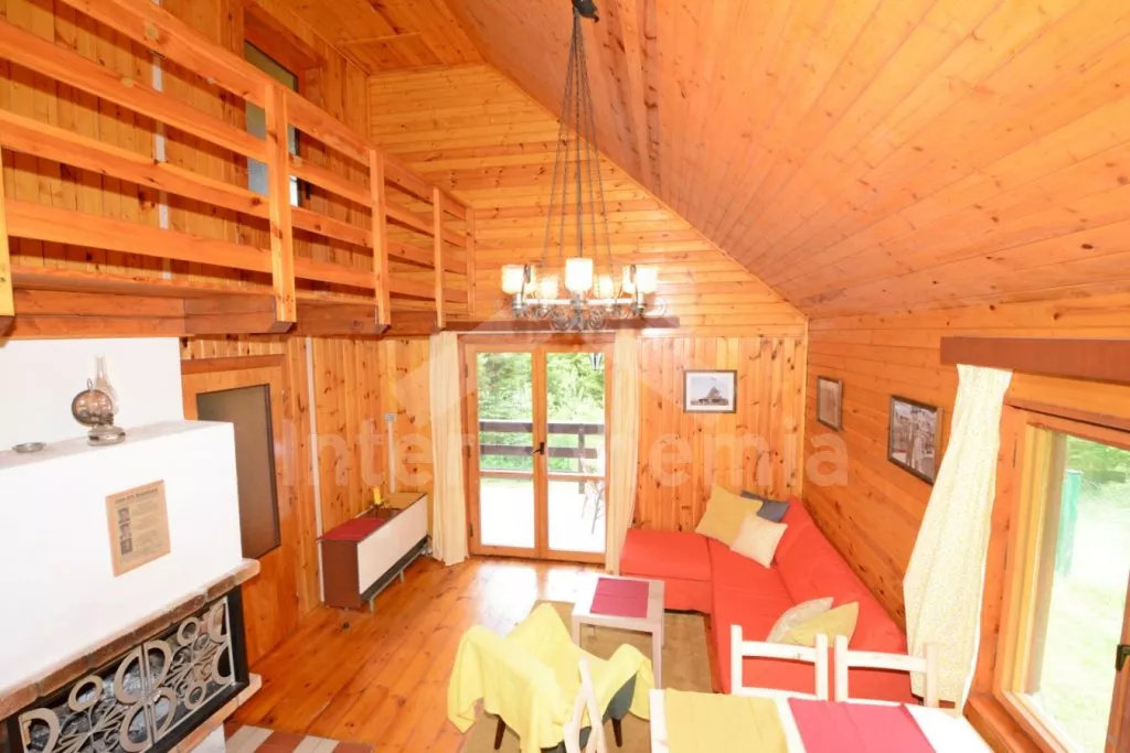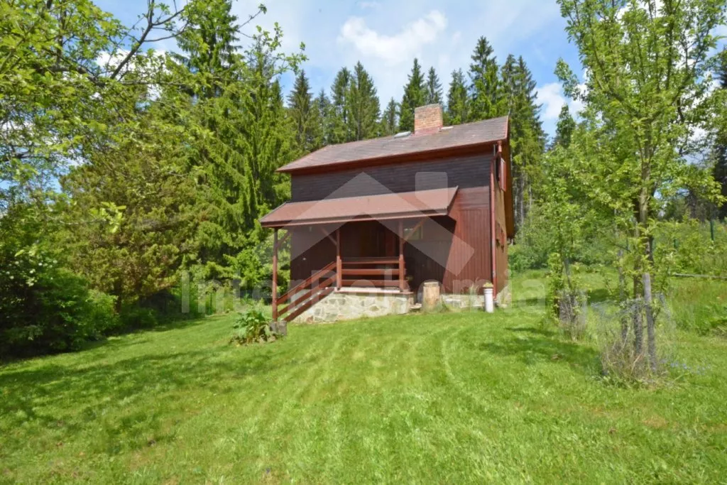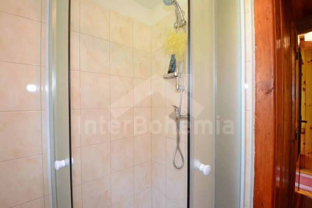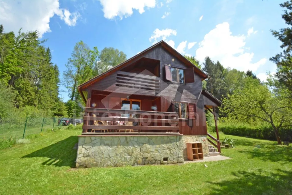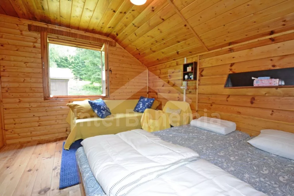 Nice wooden cottage with three bedrooms with its own fenced garden. Entrance, living room connected with the kitchen. In the living room there is dining table for 5 persons, seating group (foldable to an extra bed for one person up to 18 years old), coffee table, radio and a fireplace. Kitchen with electric hob, microwave, fridge/freezer, coffee maker, kettle and tableware. In the attic there are 2 separate bedrooms, the first with a double bed, the second with a double bed and a balcony with seating area. On the ground floor there is a third bedroom with a double folding bed. Bathroom with shower and sink. Separate toilet. Heating of the object by electric heaters or locally by fireplace. Guests have a terrace with rattan seating and a portable grill at their disposal, in the fenced garden there is a fireplace and a swing for the children. Parking next to the object for 2 cars.