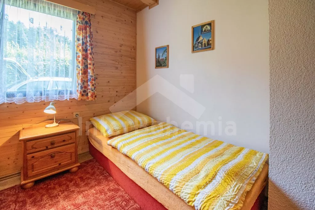 In east Bohemia, in a small holiday village in the forest, by the water reservoir Sec, 3 km from the village of the same name, ca 20 km south of the town Chrudim. The cottage stands in a sunny location about 300 meters from the water tank, the whole yard is enclosed by a green hedge. An ideal place for spending a quiet family holiday. The area offers ideal conditions for swimming, walking, cycling (there are many marked cycle paths) and making many of various trips. Chateau Zleby 17 km, chateau Slatinany 20 km, the ruins of the castle Zumberk 20 km, the open air museum Vesely Kopec 18 km.