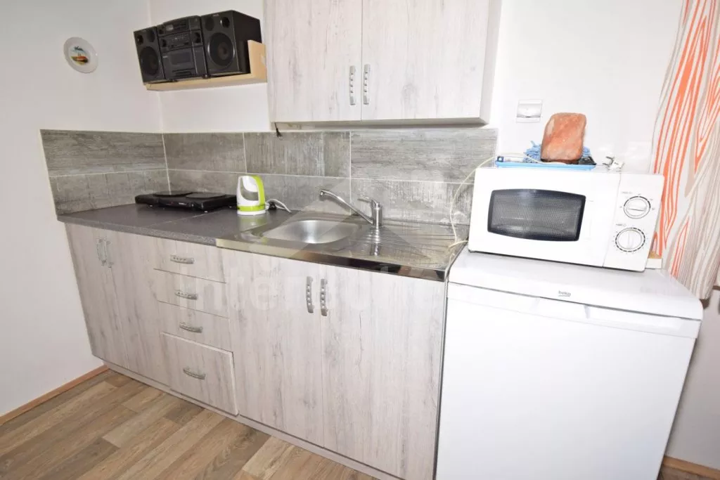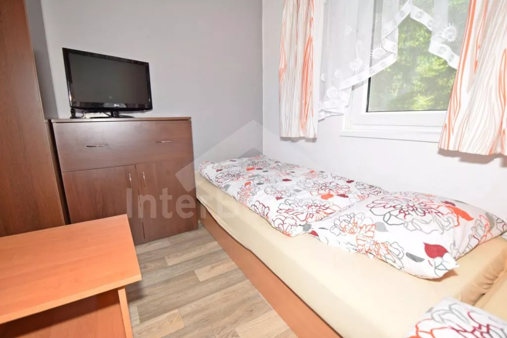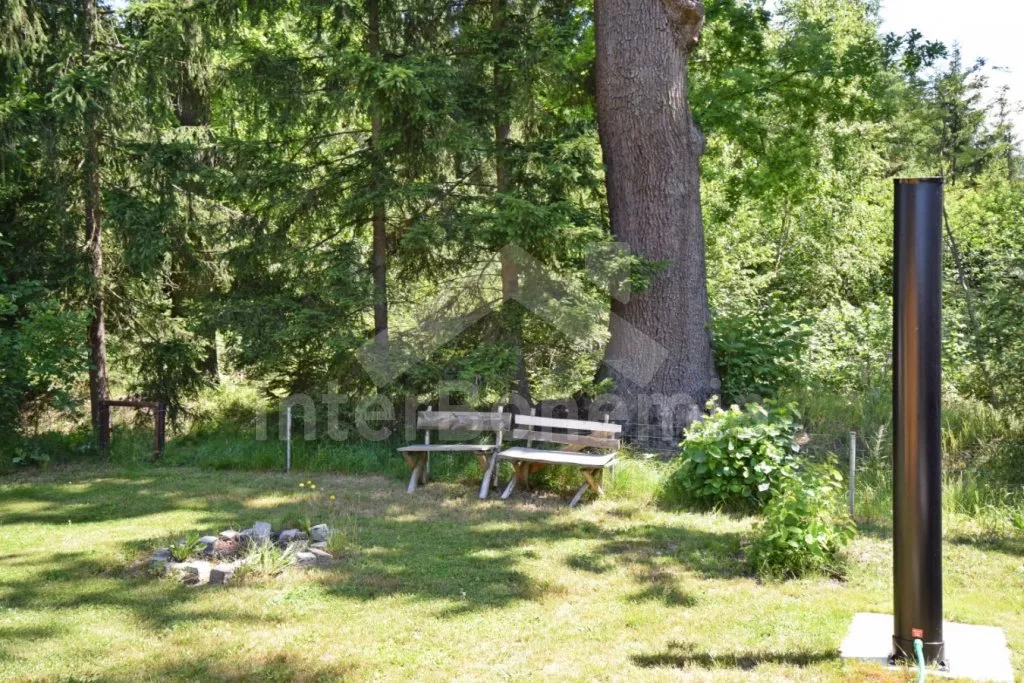 Detached cottage with its own garden, cosily furnished and newly built in 2018. Living room with kitchenette, dining table for 3 persons, a single bed, a bunk bed, wood-burning stove, HiFi system and LCD TV. Kitchenette with ceramic hob, microwave, fridge, kettle and tableware. Bathroom with shower, sink and toilet. The cottage is heated by a fireplace. Fenced garden with seating, grill, fireplace and outdoor shower. Parking for 2 vehicles at the object.