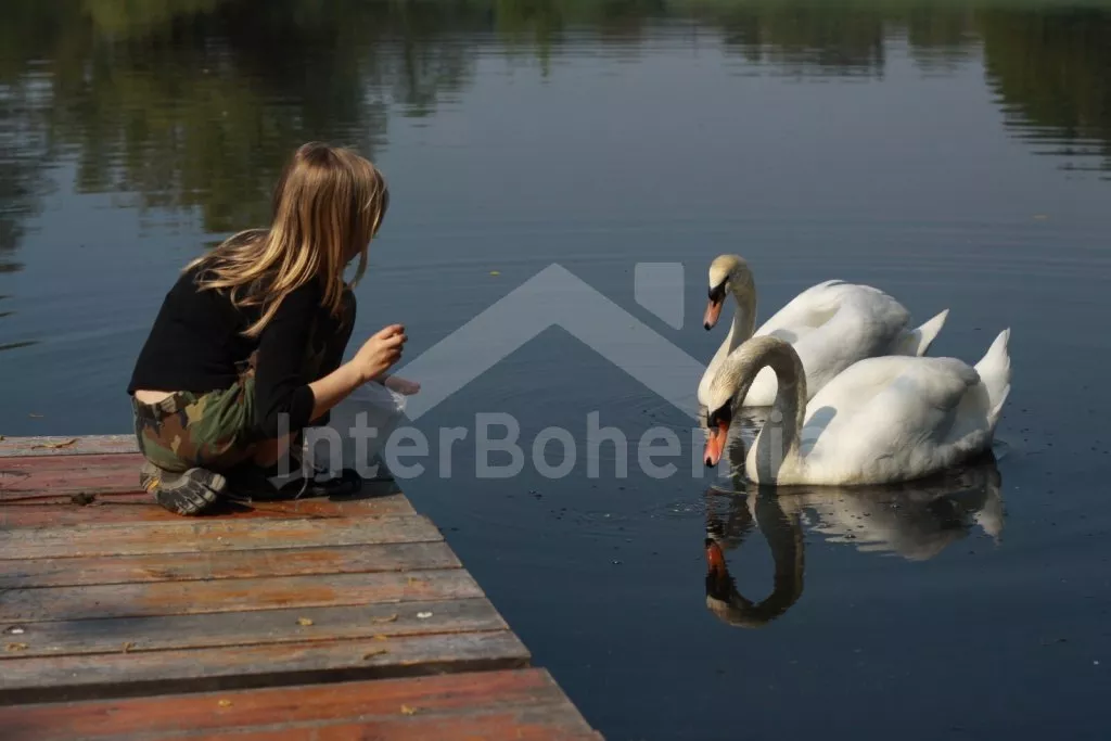 In central Bohemia, in a holiday area on the shore of pond Libohost (fishing is prohibited here!!!), about 15 km southwest of town Benesov and about 50 km from the capital Praha (Prague). The house stands on a quiet place with a view of the pond and woods in the vicinity. On the other side of the pond, there is a farm where horses are kept. About 4 km from the cottage you can visit the deer-park with fallow deers, mouflons and goats.