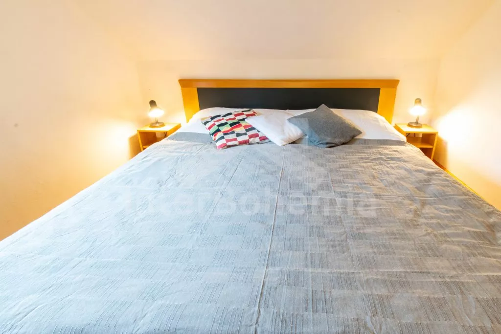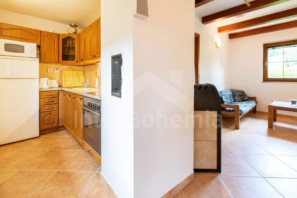 Distances: Food shop (Zabovresky) 2 km and (Dubne) 5 km, supermarket (Hluboka) 10 km and (Ceske Budejovice) 12 km, restaurant (Dubne) 5 km, (Netolice) 9 km and (Hluboká) 10 km. In the town of Hluboka (10 km) you will find shops, restaurants, post office and bank, but also an outdoor pool with a water slide, a playground, tennis courts and a pool, mini golf, golf, bowling, boat rentals and sightseeing tours by boat along the Moldova. Riding (Vondrov) 10 km. Outdoor and indoor pool, sauna, tennis courts and bicycle hire (Ceske Budejovice) 12 km. The pond and Yacht Club Bezdrev boats (520 ha) 10 km. Swimming and water sports (surfing) just 100 meters Fishing (with permission) in a pond or river Vltava (Hluboká) 10 km. About 20 meters from the house there is a playground for tennis or volleyball. Forest 500 m.