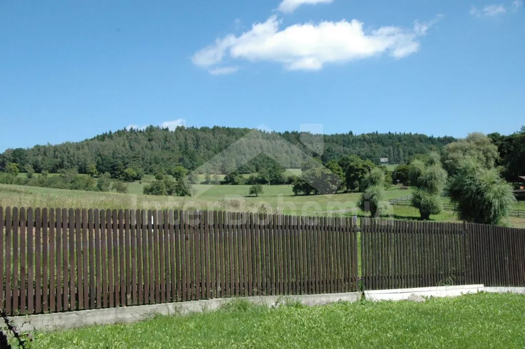 In Ore Mountains, in small holiday area on the outskirts of small village Pulovice with beautiful view of the village and partly hilly and forested landscape. Attractive place 8 km from Karlovy Vary where there is thermal pool, sauna, tennis, minigolf, golf and horse riding. Basic shop and restaurant 3 km, supermarket 8 km. Open-air pool 100 m.