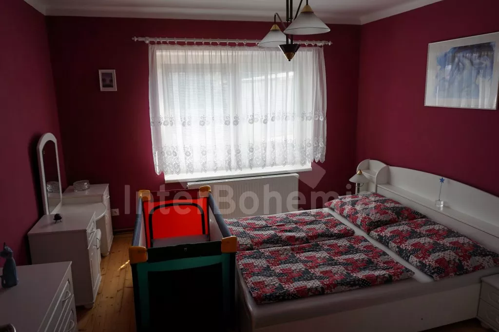 Free-standing country house, in 2009 completely and nicely renovated, well and comfortably furnished. You are renting only the ground floor, first floor is closed (you find the whole house to rent under our code JC 0747). Entry, hall, living room with sitting area (used also as a fold-out bed – 1,5 bed), fireplace and TV with DVD. Modern kitchen with dining table, electric stove, refrigerator, coffee maker, electric kettle and microwave oven. Bedroom with a double bed and possibility of one extra bed (mattresses on the ground). Bathroom with shower and separated toilet. Central heating with a firestove and oil heating. The garden is partially fenced, entrance with roller gate. There is garden furniture with parasol, portable grill, sand pit and table tennis at disposal.