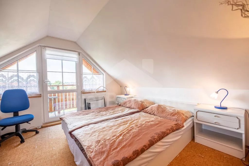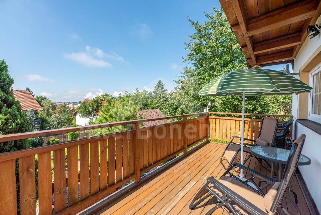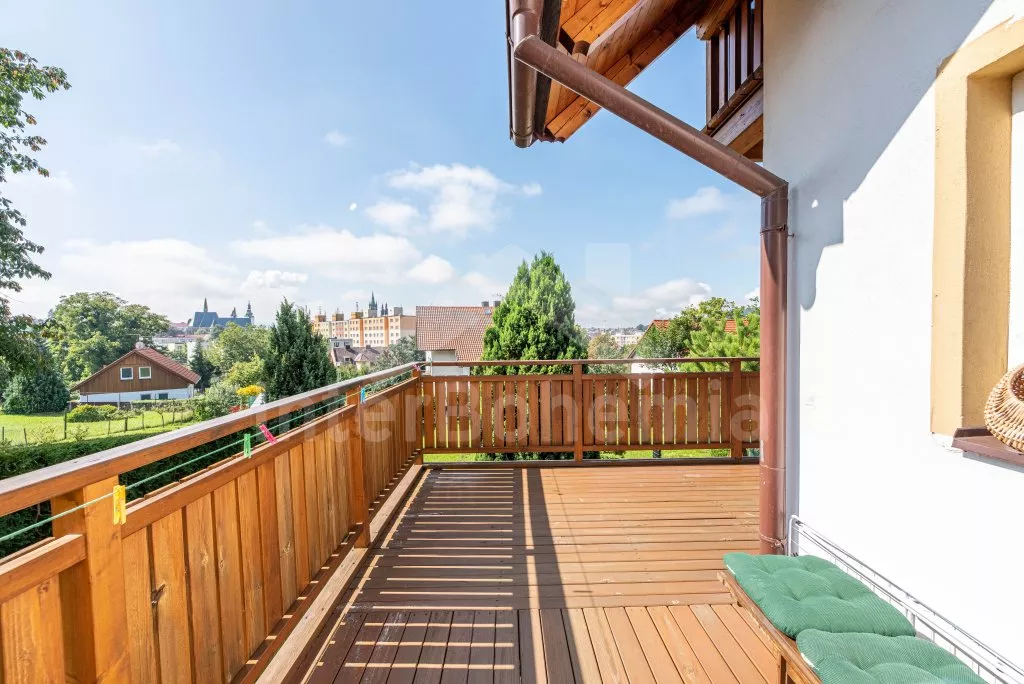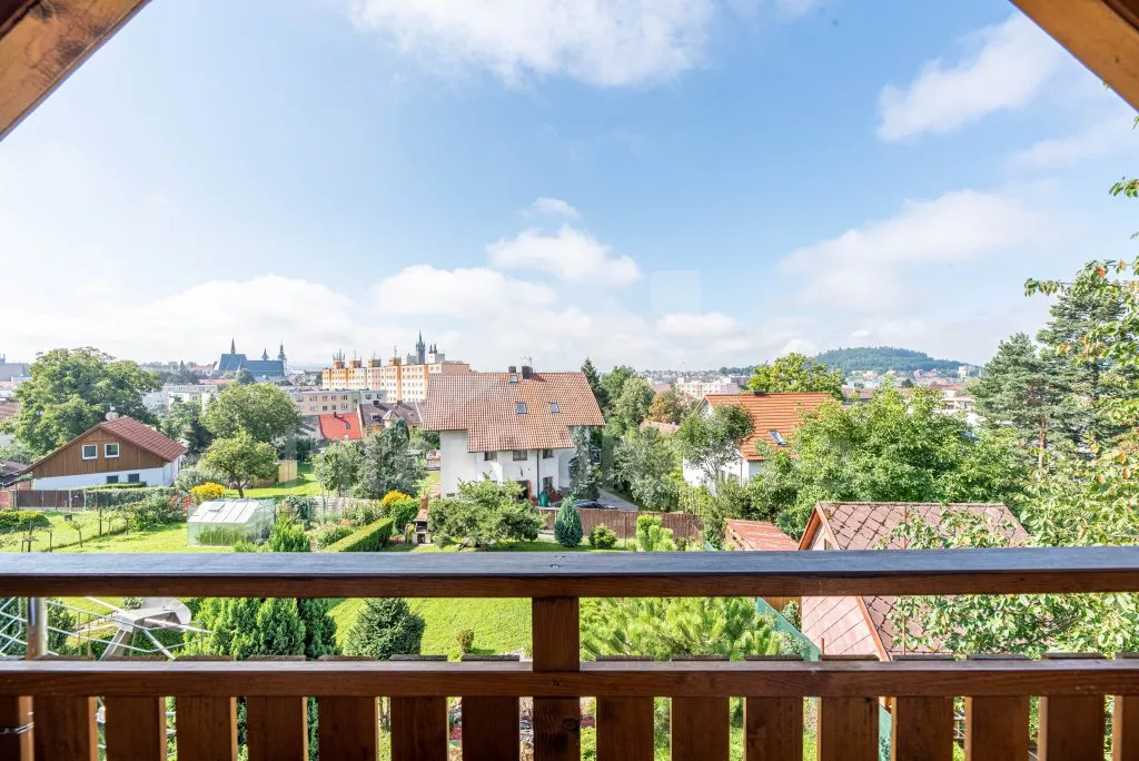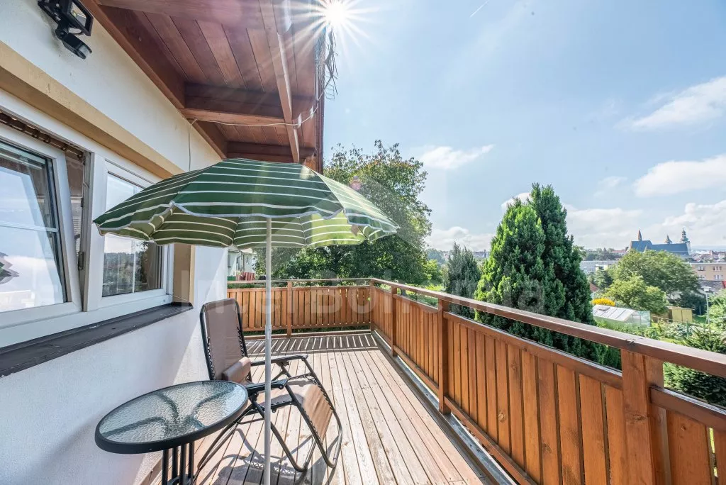 Newly built house in 2013 on its own fenced property, with two terraces and a beautiful view of the Black Tower and the Šumava Mountains. Entrance, hallway, living room connected to the kitchen. Kitchen with stove (gas), electric oven, microwave, refrigerator with freezer, coffee maker, kettle and kithenware. In the living room there is a seating group for 4 people, a table, a bar counter for 2 people, a radio, an LCD TV and a fireplace. The room has access to a spacious L-shaped terrace with seating and sun lounger. Up the narrow stairs enter the large attic bedroom with a double bed and two single beds. From the bedroom there is access to a covered balcony with a sitting area and a wonderful view of the city skyline together with the Šumava hills. The ground floor bathroom with shower, sink, toilet and washing machine. Heating the house with electric heaters and local stoves. Guests have at their disposal a fenced garden, a garden seating area and a stone barbecue. Parking on an enclosed property and in front of the house for 2 cars.