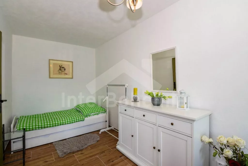 Stylish cottage with its own fenced garden, after a tasteful reconstruction in 2020. Entrance from the yard, hallway, living room with leather seating group, LCD TV, radio, dining table for 6 people,… More information