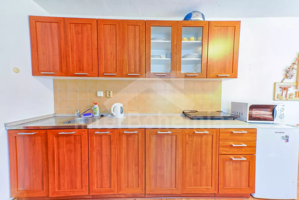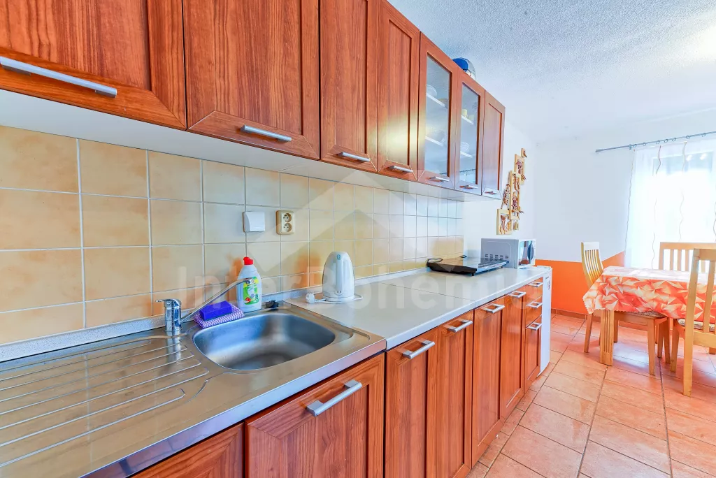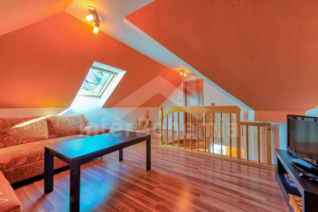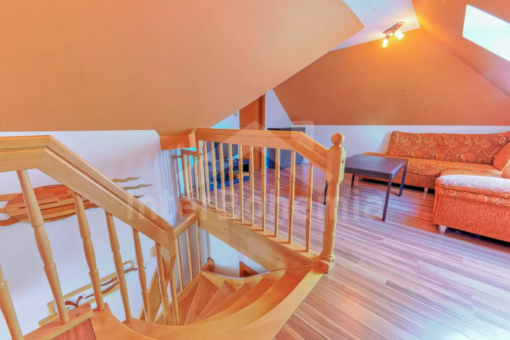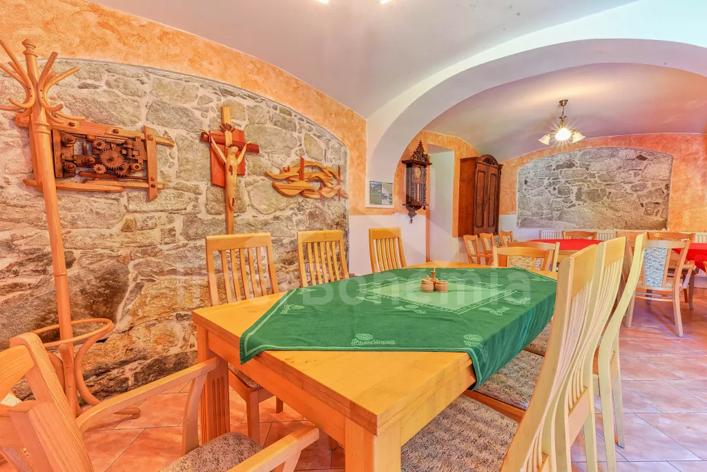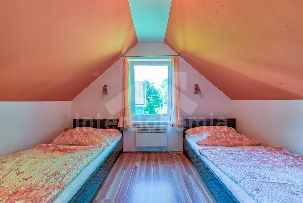Pets are allowed (only a small and non-conflict up to 15 kg, EUR 4,-/night). The consumption of electricity over 30 kWh per week shall be paid on the spot to the landlord. The guests are asked to bring a slippers with them and change the shoes. The house of the landlord stands on the same land, where is, after the agreement, possible to use a gym with exercise bike, table tennis (the possibility of involvement of auto-trainer), billiards and darts. There also is a small family restaurant - it is possible to arrange meals (breakfast, half board or full board). In agreement with the landlord there is a possibility of renting 4 bicycles and sports equipment (tennis and badminton rackets, balls, bow). Tourist fee and fee for a dog are paid in advance to the account. Cancellation conditions apply for this object: 90 or more days before arrival 50% of the price, 89 days or less before the stay 100% cancellation fee. The landlord can arrange for you a sports tournament. The house is suitable for up to 4/6 persons.