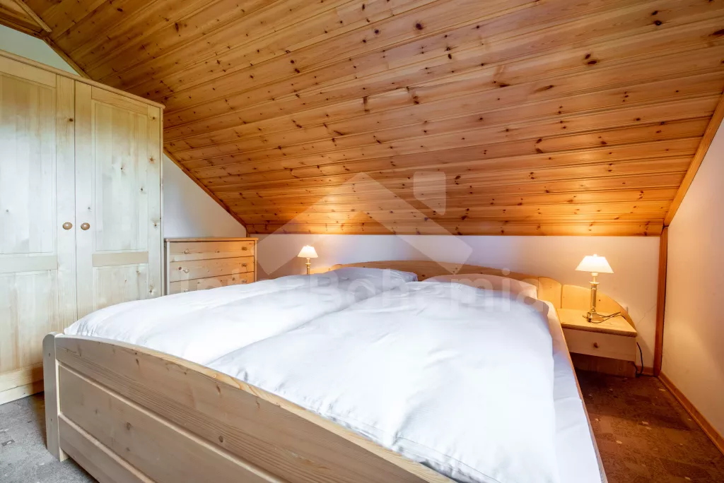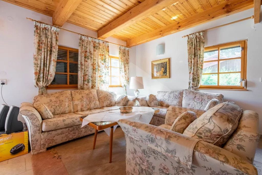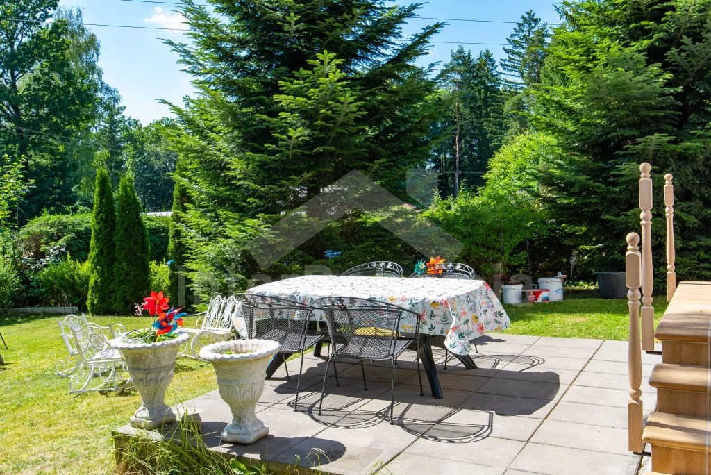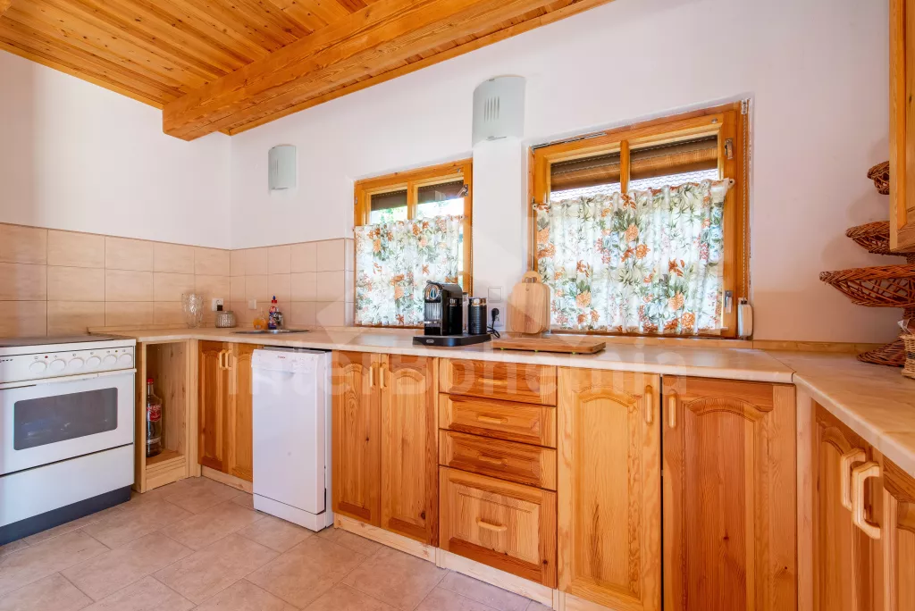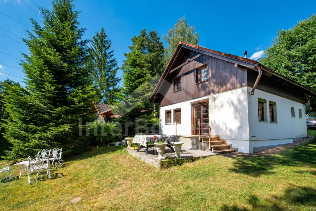 Pleasantly furnished holiday cottage with its own garden with mature trees and good walking distance to the banks of the Seč dam. On the ground floor, a spacious living room with sofa, TV, fireplace and dining table. It is directly connected to the kitchenette with electric stove, microwave oven, toaster, Remo, coffee machine (for capsules), kettle and dishwasher. Fridge with freezer in the hallway. Bathroom with sink and shower. Separate WC. A total of 3 bedrooms in the attic, all with double beds. Possibility of sleeping in an open attic alcove on 2 mattresses (ladder access). Heating the building with fireplace stoves. Guests have at their disposal a partially fenced garden with outdoor seating, a swing set, a garden grill and covered seating in the cottage annex. Parking at the property for 2 vehicles.