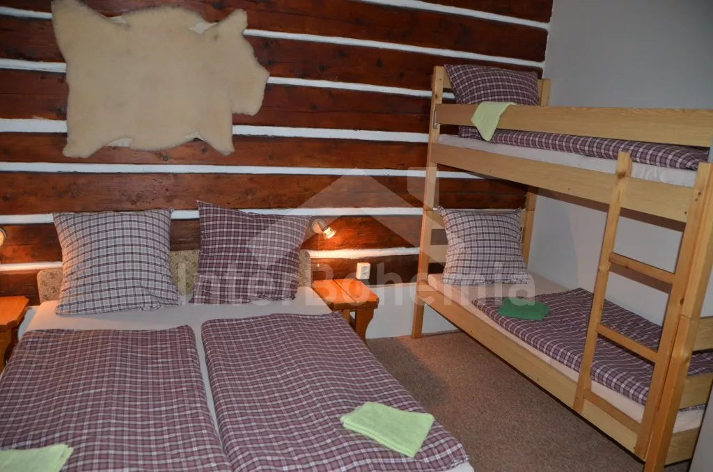 There is a non-fenced garden (meadow), garden furniture, barbecue (for a fee) a trampoline, 3 swings, a slide, and a pool with filtration, 4.5 m in diameter. Under the Cottage there are sheeps on the meadow in summer. In the summer the parking is at the house of up to 5 cars. The passport is free of charge from the landlord, the refundable deposit for the loss is CZK. 500, -. The winter parking see winter info. A maximum of 4/5 people can be accommodated here.