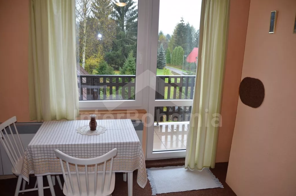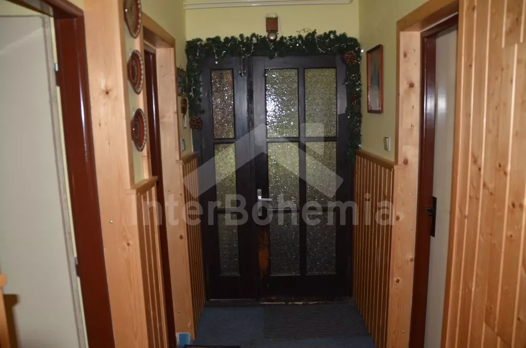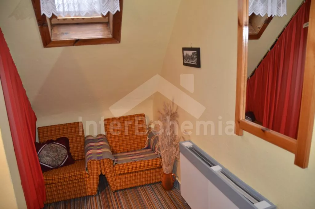 One pet allowed for a fee € 18,-/pet/week. Wifi connection is available. Linen, towels, water and electricity consumption are included. A fee for wood of 2,000 CZK/m3 is paid on the spot. Electricity consumption for shorter stays (winter CZK 2,000, off-season CZK 1,500). Shortened stays min. 3 nights. Final cleaning (CZK 1000,-). The landlord lives on the ground floor, which respects the privacy of guests. Upon appointment, breakfast or half board can be arranged in a hotel 50 meters away. The house is suitable for up to 8 people.