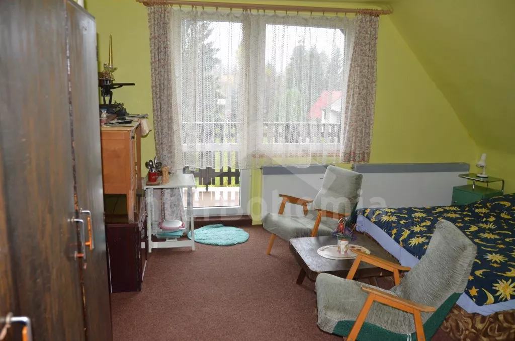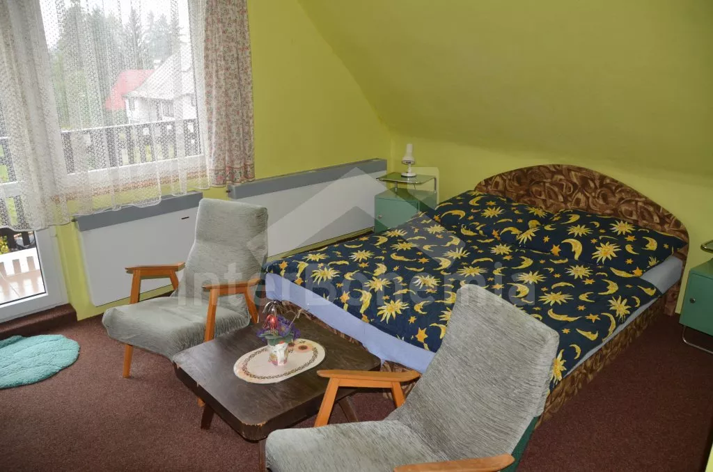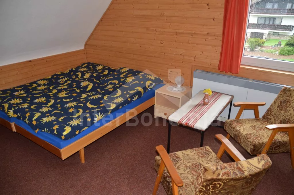 Detached family house, nicely furnished. Entrance during veranda with a ski storage, walk-in closet, corridor and stairs to the basement and attic. Down in the basemen is a common room with a dining table with seating for 8 persons, hearth, SAT TV, refrigerator and partly separated kitchenette with 2 plates cooker, microwave oven, electric kettle, coffeemaker and sink. In the corridor there is a separate toilette. On the first floor is a corridor with seating and 3 separated bedrooms. First one with double bed, seating, TV and bathroom with shower, washbasin and toilette. Second one with double bed and one single bed, seating, entrance to the balcony and bathroom with shower, washbasin and toilette. Third one with double bed, one single bed and one extra bed, TV and entrance to the balcony; bathroom with shower, washbasin and toilette for this bedroom is on the corridor. Central electrical heating. There is a non-fenced garden with a seating area at the garden fireplace, a swing and a sandpit. There is a possibility of a small inflatable pool for children, also there is the opportunity to rent badminton, petanque, croquet. Parking in front of the object.