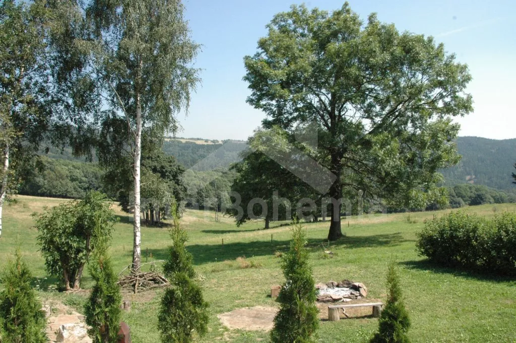 In Ore Mountains, at the edge of holiday village Nova Viska, ca 36 km northwest of Karlovy Vary, town with healing springs and nice architecture. In calm and nice landscape of Ore Mountains, on the hill, at the edge of forest. View of meadows and forests in neighbourhood. Shops, restaurants and othe cultural amenities in Klasterec nad Ohri 8 km. Aqua park with in-door pool, sauna and tennis also there. Thermal open-air pool 15 km, nice golf ground with 18 holes 35 km. Dam Nechranice 18 km, swimming and water sports possible. Forest 100 m.