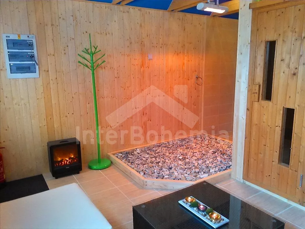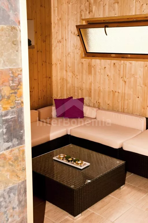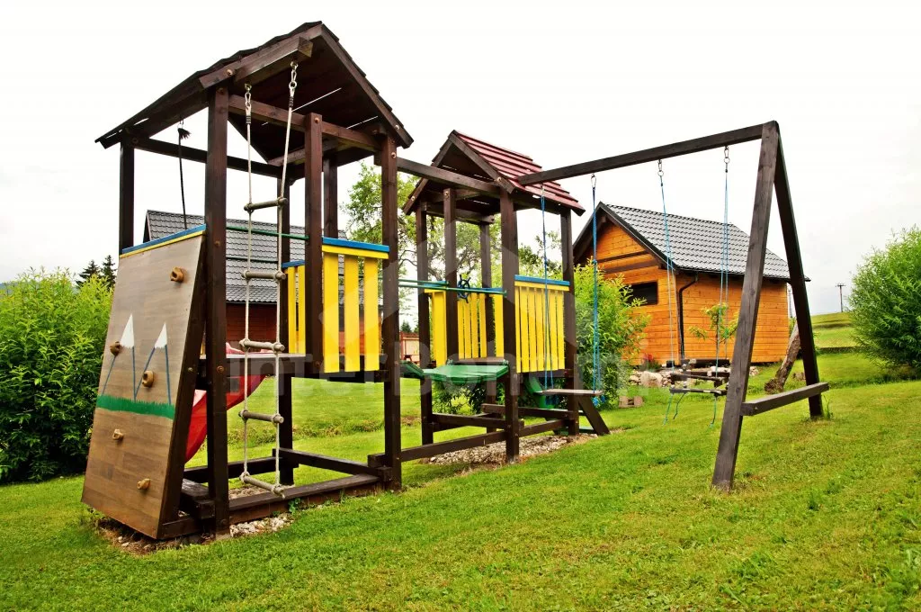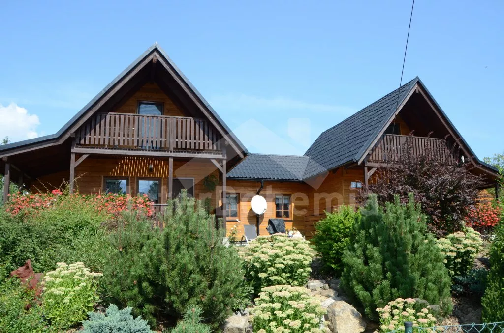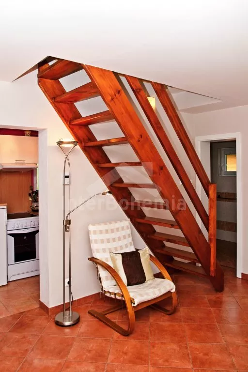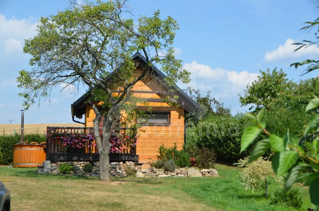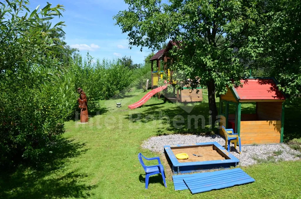 Two detached cottages standing next to each other, which are arranged mirror. The chats were in 2009 newly built and are absolutely ideal for two friendly families - right cottage has a code VC 0005 A and the second cottage you will find under a code VC 0005 B. Entrance, hall, living room with sofa, dining table, satellite TV and DVD and the entrance to a roofed terrace. Open kitchen with electric stove, refrigerator/freezer, coffee maker, electric kettle and microwave oven. Bathroom with shower, separate toilet. In the attic (access by stairs from the lounge) there are two bedrooms with sliding door - one with double bed and second with double bed and one single bed. Gas heating. The garden is fenced, there is a covered garden furniture and garden fireplace for each house at disposal. Also (together for both cottages) there is a climbing frame with slide, swings, rope ladder, rope bridge and small climbing wall (for children), garden playhouse, sandbox, trampoline and a round pool with diameter 3,66 m and 0,85 m deep. Clients have a relaxing cottage with sauna at disposal (together for both cottages, in the high summer season - July/August - for a fee, during another periodes included in the price). Hot Tube (main season for a fee together with relaxing cottage, during other periods included in the price, together for both cottages) also at disposal (outside the period of severe frosts). Own parking lot inside the fenced garden (2 cars per cottage).
