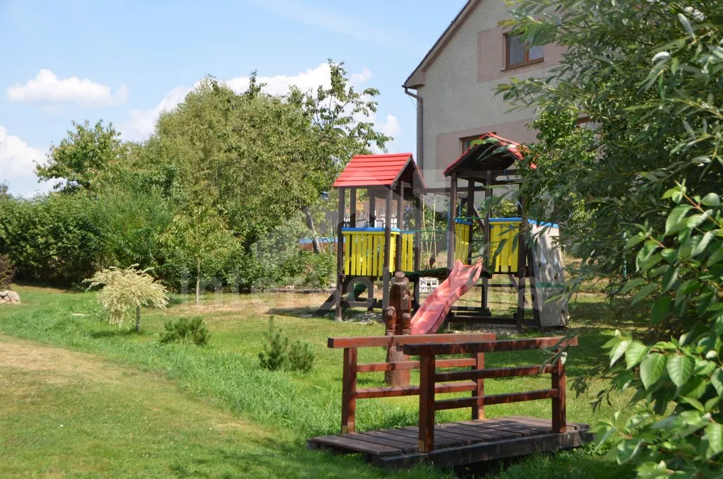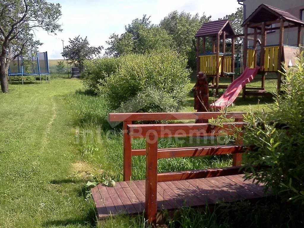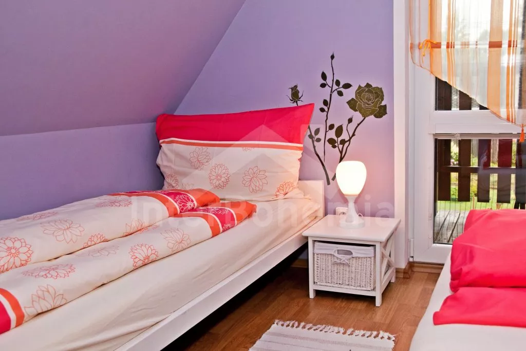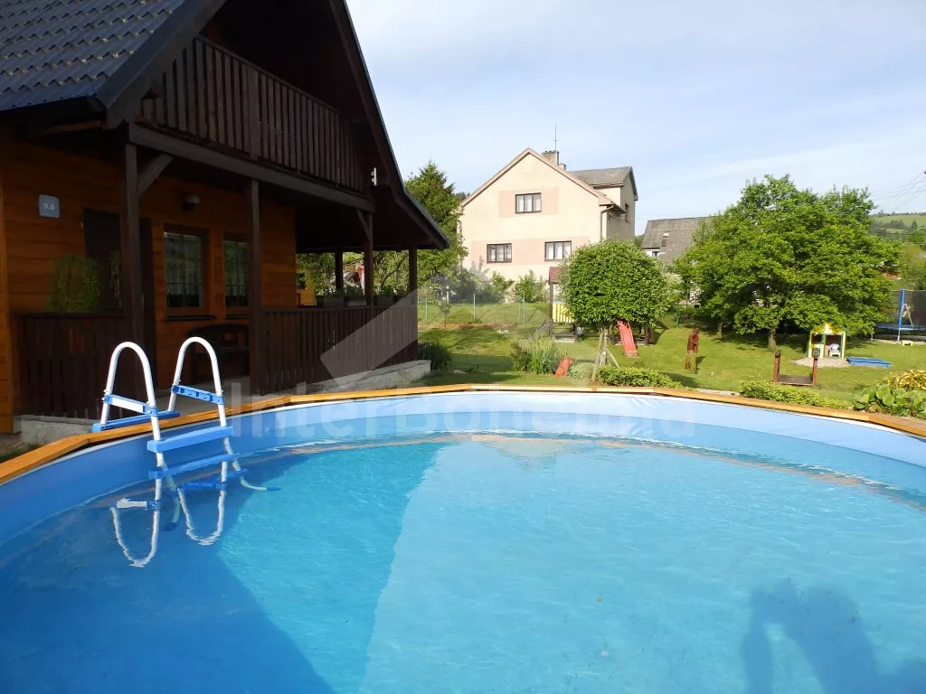 Two detached cottages standing next to each other, which are arranged mirror. The chats were in 2009 newly built and are absolutely ideal for two friendly families - left cottage has a code VC 0005 B and the second cottage you will find under a code VC 0005 A. Entrance, hall, living room with sofa, dining table, satellite TV and DVD and the entrance to a roofed terrace. Open kitchen with electric stove, refrigerator/freezer, coffee maker, electric kettle and microwave oven. Bathroom with shower, separate toilet. In the attic (access by stairs from the lounge) there are two bedrooms with sliding door - one with double bed and second with double bed and one single bed. Gas heating. The garden is fenced, there is a covered garden furniture and garden fireplace for each house at disposal. Also (together for both cottages) there is a climbing frame with slide, swings, rope ladder, rope bridge and small climbing wall (for children), garden playhouse, sandbox, trampoline and a round pool with diameter 3,66 m and 0,85 m deep. Clients have a relaxing cottage with sauna at disposal (together for both cottages, in the high summer season - July/August - for a fee, during another periodes included in the price). Hot Tube (main season for a fee together with relaxing cottage, during other periods included in the price, together for both cottages) also at disposal (outside the period of severe frosts). Own parking lot inside the fenced garden (2 cars per cottage).