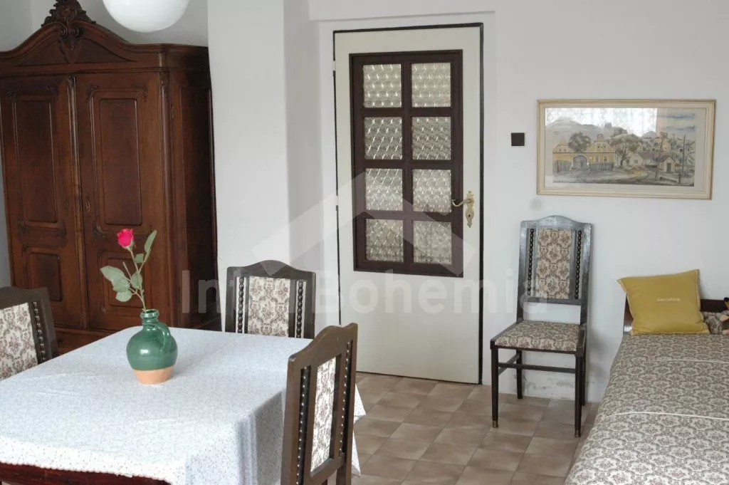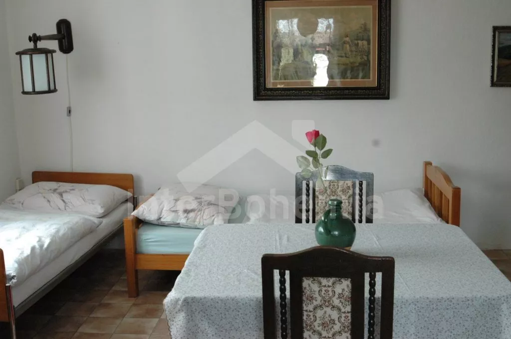 In South Bohemia, in village Hvozdany – typical south-bohemian village with small pond in village square; ca 4 km west of small town Bechyne and 25 km from historical town Tabor. Ideal for those, who want to spend restful holiday „in the past“; in the atmosphere of old Czech country. Shop with basic necessities, supermarket, restaurant, swimming pool and tennis 4 km. In-door swimming pool and sauna in Tabor. Golf 10 km. Swimming, water sports, boats and pedal boats for rent in dam Orlik 15 km. Other possibilities to swim 7 and 11 km – at the junction of rivers Luznice and Vltava. Horse riding 100 m. Wood just behind the village. Fishing (with fishing permit) in river Luznice 1,5 km.