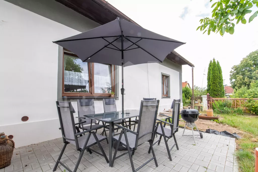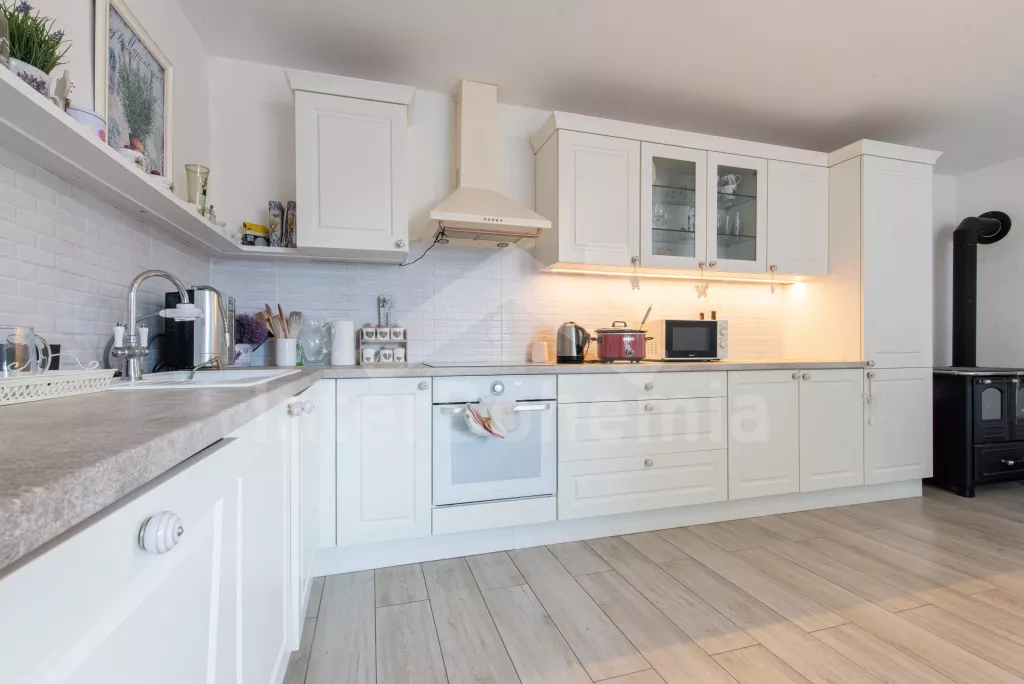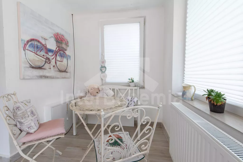 Newly renovated cottage (2023) in Provence style with pool and outdoor seating. Spacious kitchen with all necessary equipment for cooking. Glass ceramic hob, microwave oven, fridge with freezer, coffee machine, kettle, oven and dishwasher. Fireplace stove, dining table and in the second part a living room with sofa bed, coffee table and TV. Bedroom with double bed, TV and bedside tables. Second bedroom with double bed, TV and PC. Third bedroom with a double bed and the possibility of an extra bed for 2 people on mattresses. Bathroom with shower and 2 sinks. Separate WC. Second bathroom with bathtub, sink and toilet. Fenced garden with table tennis table, sitting area with parasol and swimming pool (420 x 220 cm). Parking in front of the building for 1 car and 2 parking spaces on the property.