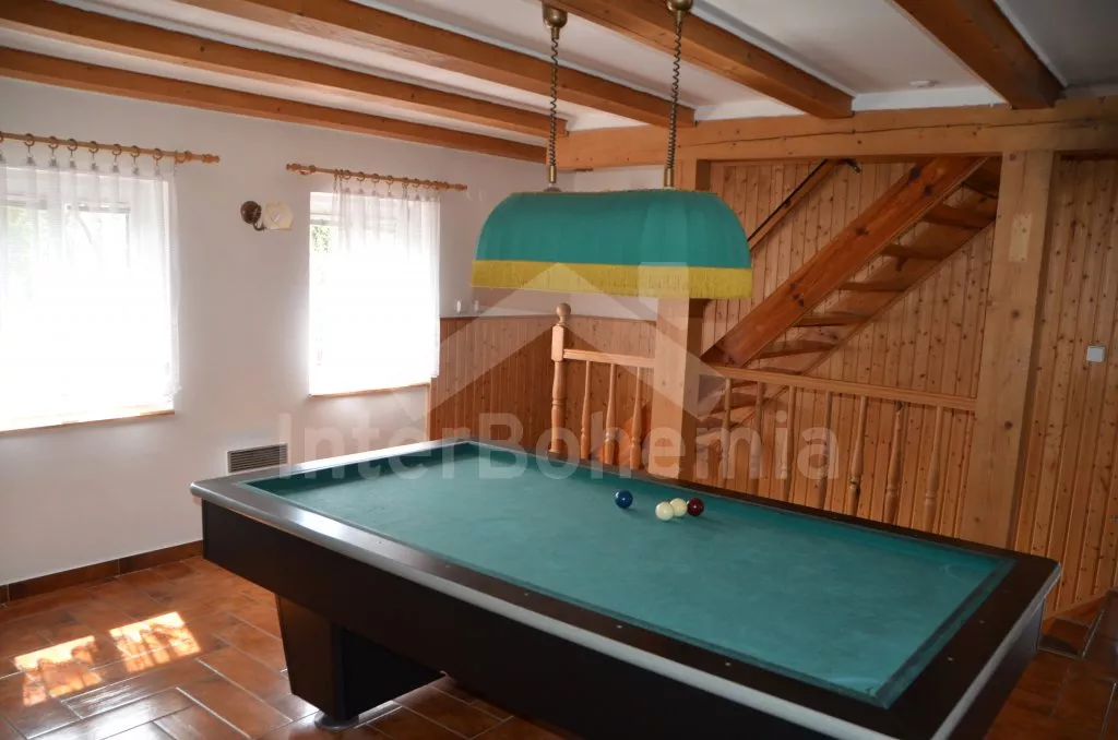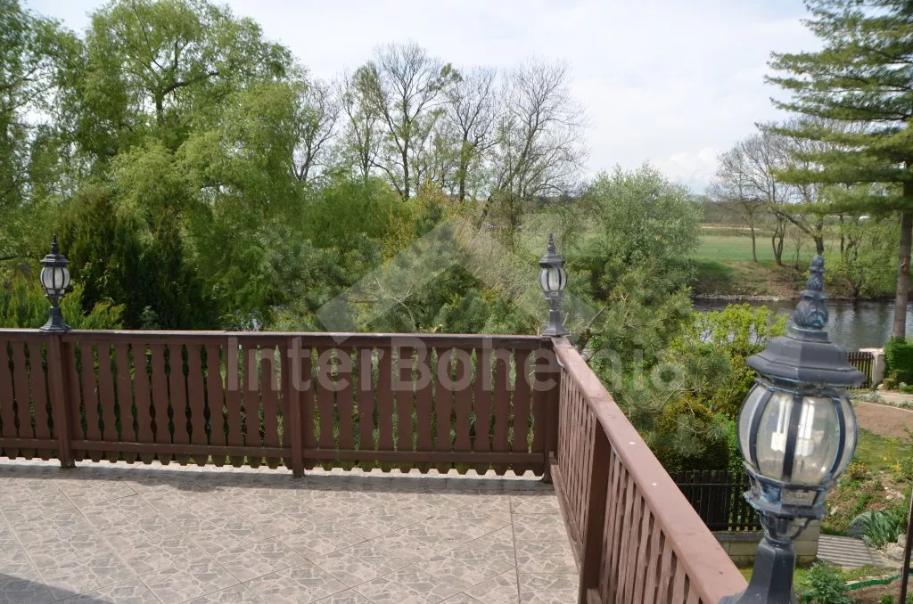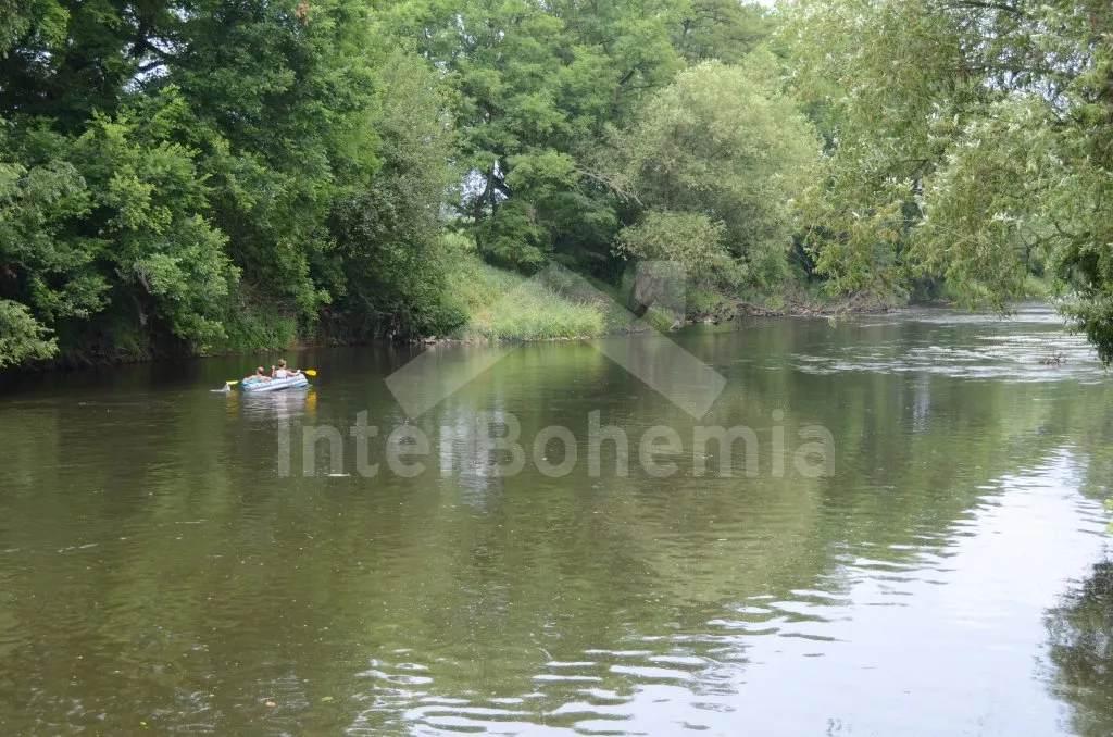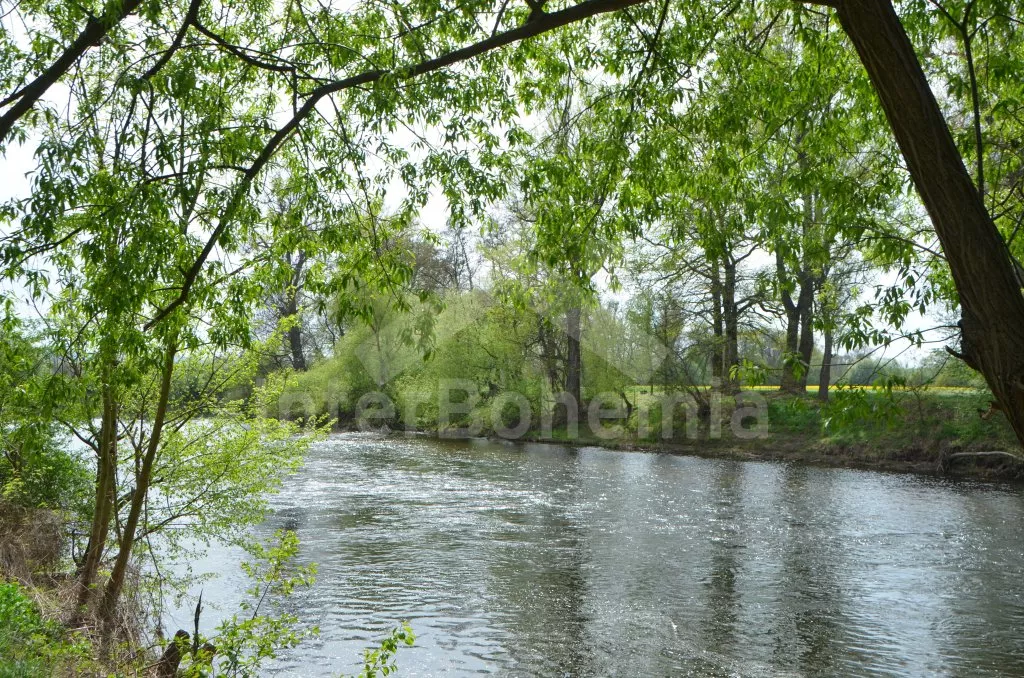 In central Bohemia, restful location at the edge of small village Mradice, along the river Ohre, about 10 km west of town Louny and about 60 km from Prague. Shop 6 km, supermarket and restaurant 6 and 10 km. Open-air aqua park, in-door swimming pool and sauna, tennis, horse riding – all 10 km. Golf course (Bitozeves)10 km. Swimming and canoeing possibilities in river only 10 m from the house. Paragliding 12 km. Fishing possibilities (with a fishing permit) 10 m. Along the house leads a tourist and cycling track to the "Temple of hops and beer" (chrám chmele a piva) in the town Zatec, the path leads on a picturesque road, which snakes among the hop-fields and also goes through the village Steknik (unique monument zone with a small rococo chateau). The "Temple of hops and beer" is the biggest museum of hop growing and beer production in the world, also with many attractions for the whole family.