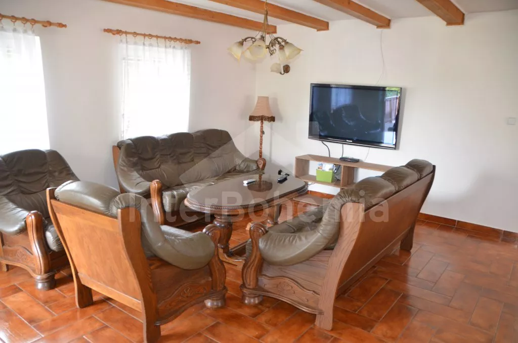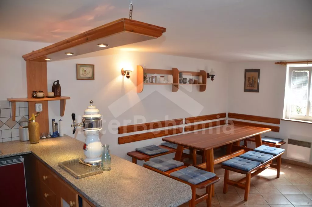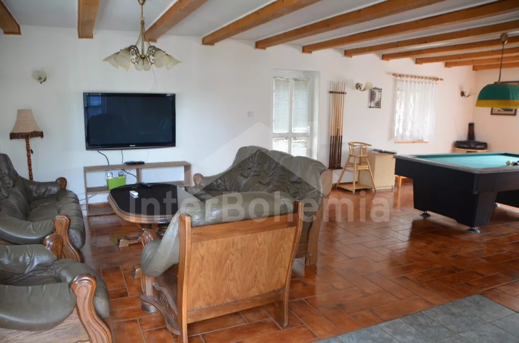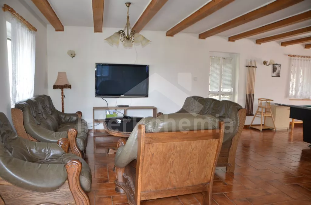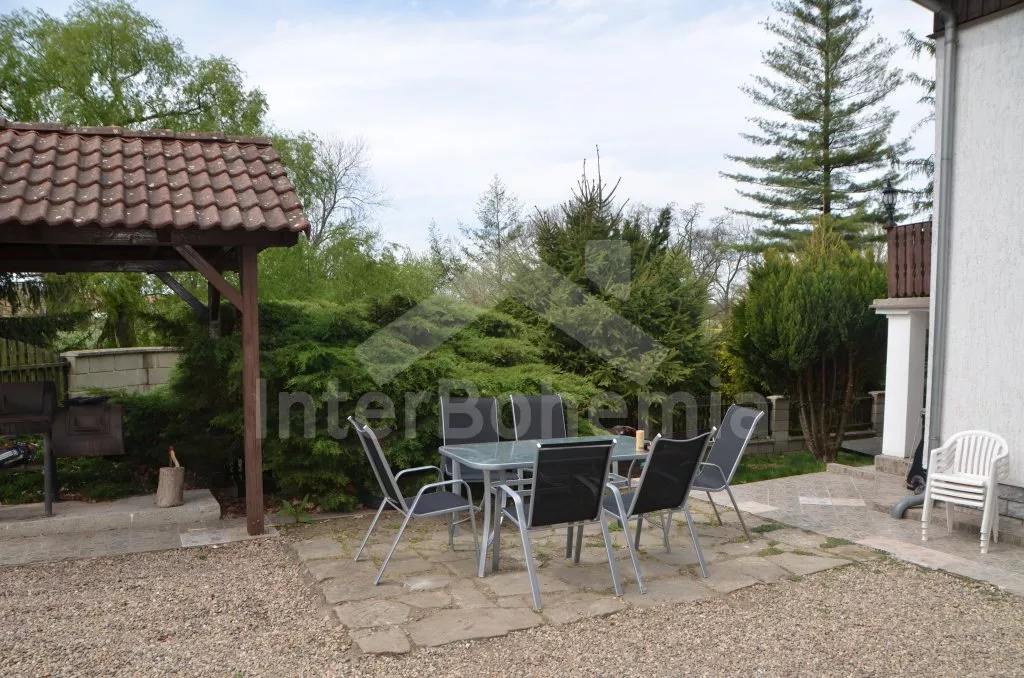 In central Bohemia, restful location at the edge of small village Mradice, along the river Ohre, about 10 km west of town Louny and about 60 km from Prague. Shop 6 km, supermarket and restaurant 6 and 10 km. Open-air aqua park, in-door swimming pool and sauna, tennis, horse riding – all 10 km. Golf course (Bitozeves)10 km. Swimming and canoeing possibilities in river only 10 m from the house. Paragliding 12 km. Fishing possibilities (with a fishing permit) 10 m. Along the house leads a tourist and cycling track to the "Temple of hops and beer" (chrám chmele a piva) in the town Zatec, the path leads on a picturesque road, which snakes among the hop-fields and also goes through the village Steknik (unique monument zone with a small rococo chateau). The "Temple of hops and beer" is the biggest museum of hop growing and beer production in the world, also with many attractions for the whole family.