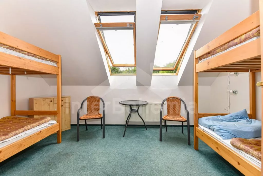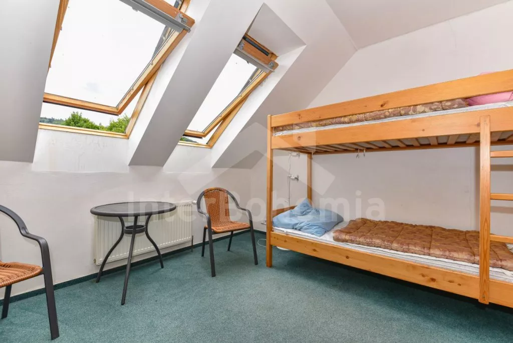 In agreement with the landlord you can rent 4 mountain bikes or make a sailboat trip. There are small safes at disposal in the rooms. The consumption of the water, electricity, coal, wood (EUR 4,-/packet) and bedlinen CZK 50,- pro set shall be paid on spot. Final cleaning EUR 50,- From 1.1.19, the deposit is € 400,-. The house is suitable for maximum of 10/18 person.