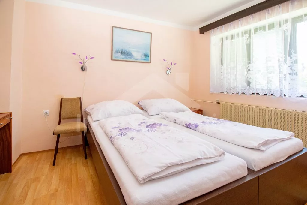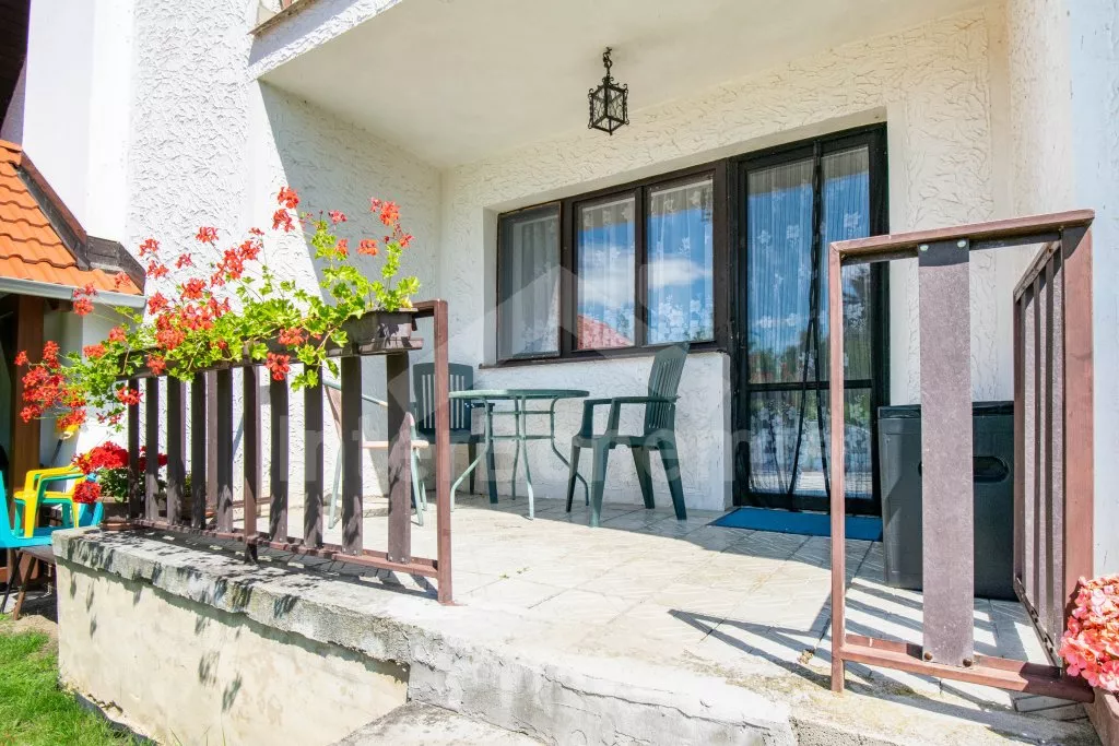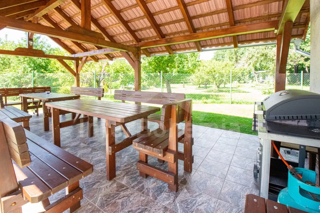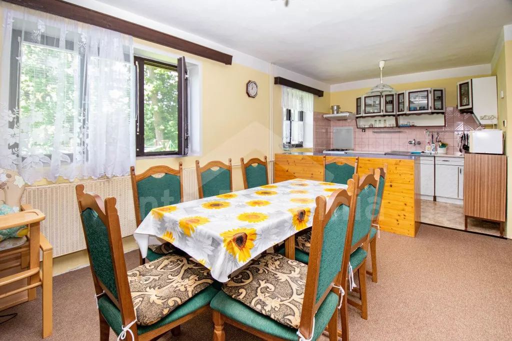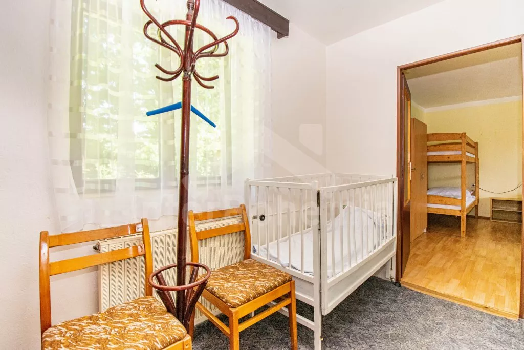 In very spacious garden (ca 3000 m2) sits also the landlord’s house. Two baby cots and two high chairs on request. Pets are not allowed. Washing machine and WiFi internet connection at disposal. Refundable deposit EUR 170,-. The consumption of electricity and consumption of gas (in the heating season) is paid on the spot. Maximum 14/16 persons. About free terms please ask in our office.