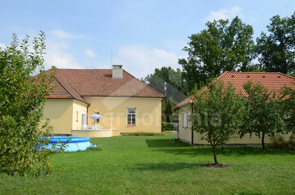 In south Bohemia, at the edge of village Hrbov, ca 25 km west of town Ceske Budejovice. Village Hrbov is situated between towns Netolice and Lhenice, in area known for growing fruit trees - „Garden of Bohemia.“ Beautiful view of meadows and woods in the surroundings. Shop with basic necessities and some restaurants in Netolice 4 km. Supermarket 16 and 25 km. In-door swimming pool and sauna in Prachatice 16 km, tennis 4 km, horse riding 2 and 3 km, golf course 24 km. Swimming and water sports in pond 2 km. Forest 400 m.