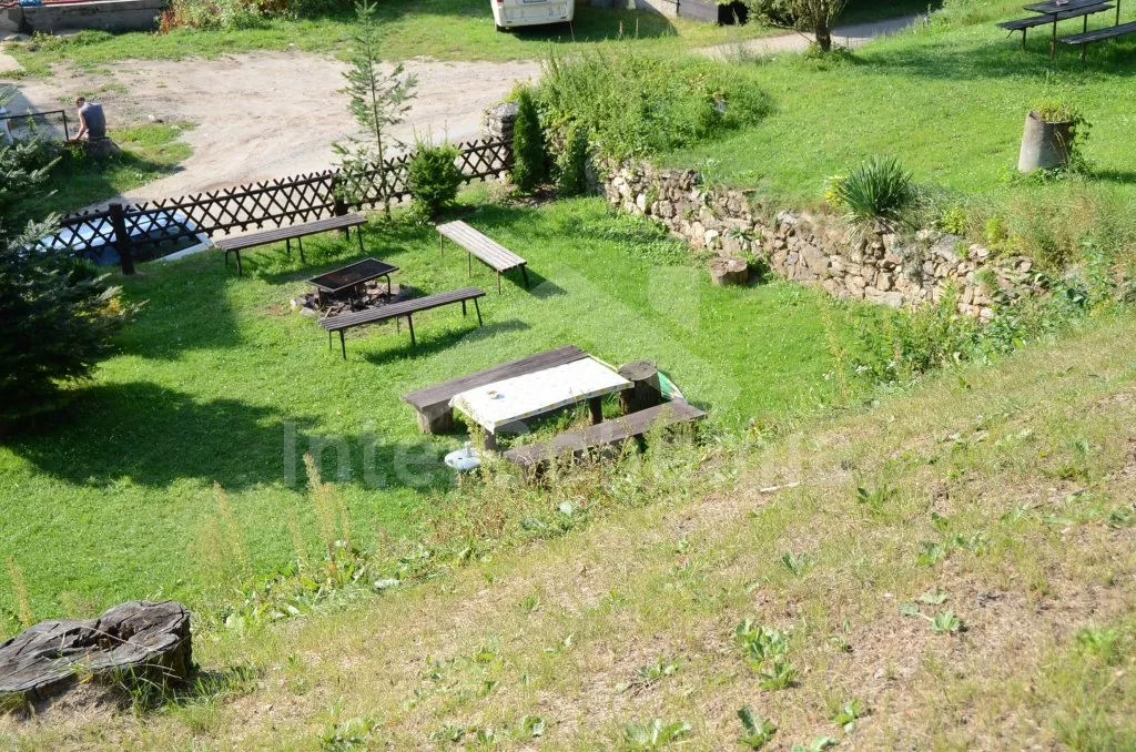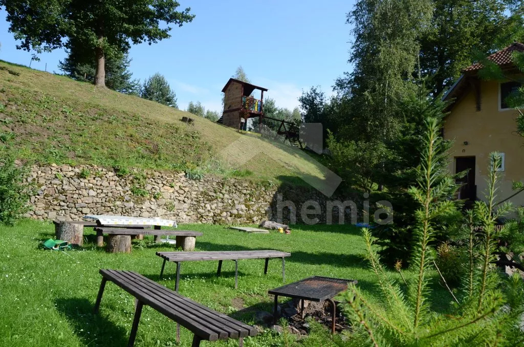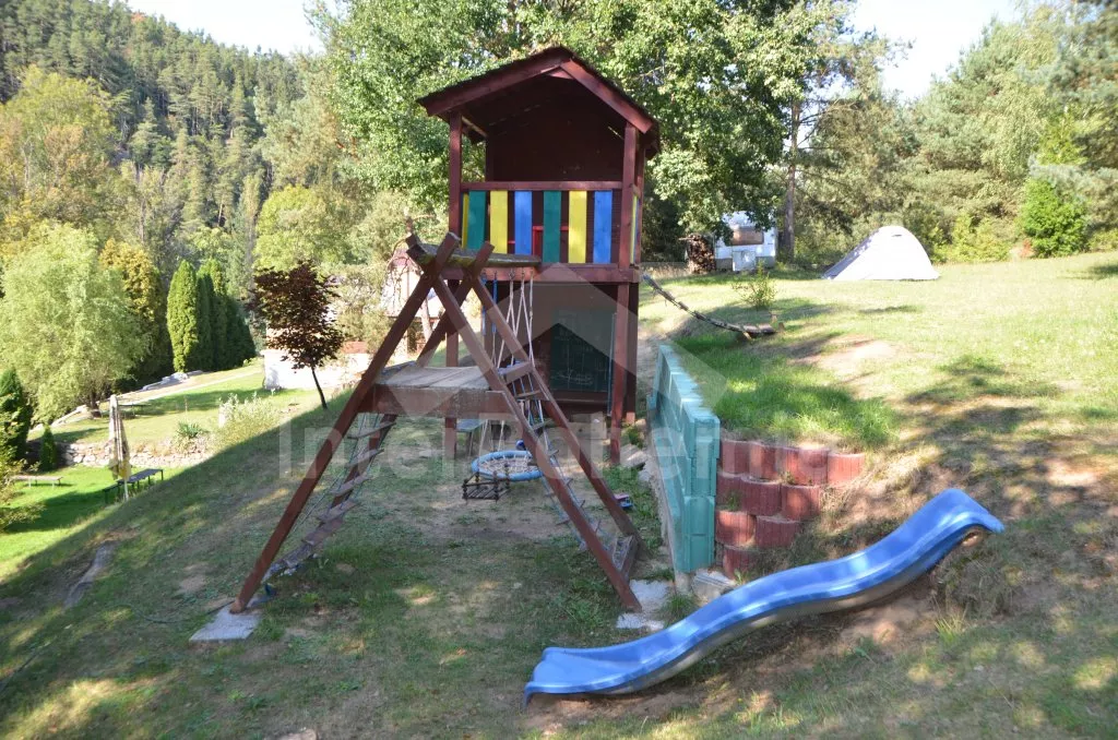 You occupy one half of a secluded water mill, which has been partially reconstructed in the year 2010. Entrance with an outdoor stairway, further single-leveled accommodation. Corridor, living room with a sitting area, table for 6 persons, fire stove and a TV set. Open kitchen with a gas stove and an electric oven, refrigerator, Kettle and a microwave oven. Two bedrooms with two single-beds and a possible extra-bed (folded armchair). The bathroom has a shower corner and a toilet. Heating with fire stove. The house stands on a partially fenced ground, garden-furniture at disposal (a table and benches) with a parasol and fireplace with a grate. Together with two mobile homes (JC 0176 and JC 0178) you will enjoy the trampoline, climbing frame, sand box for children and a boat at the river Luznice (100 m). Parking in front of the house.