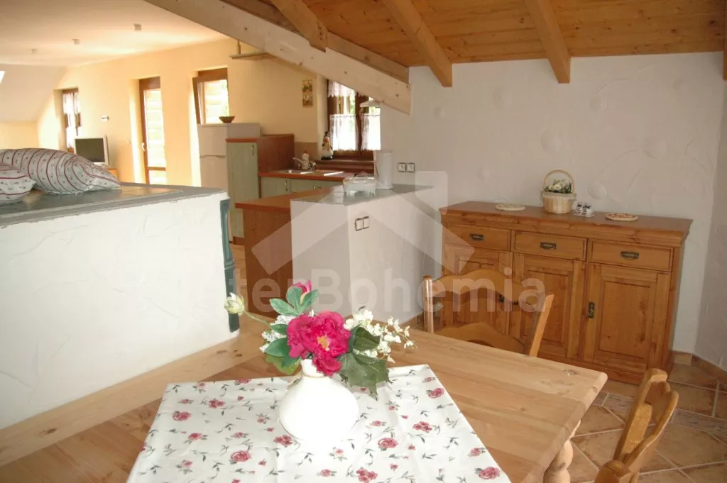 In the Ore mountains, on the outskirts of the village Hroznetin, ca. 10 km north of the famous and luxurious spa Karlovy Vary, about 16 km from the border to Germany. From the villa there is a wonderful view of the panorama of the Ore mountains. Absolutely fantastic area has much to offer both to young or those to be born before, great possibilities of activities both in summer and winter. Hiking and biking, swimming, historical and cultural monuments, many various trips. This area is especially known for a beautiful mountain scenery and beautiful spa towns with healing springs. The most famous are Karlovy Vary 10 km, Marianske Lazne 60 km and Jachymov 9 km. You can also visit the ruins of Andelska Hora 20 km, castle Becov 31 km or the castle Klasterec nad Ohri 25 km, castle Loket 20 km, „Svatosske“ rocks 15 km, natural reservoir SOOS with the muds vulcans (Frantiskovy Lazne) 46 km, moor (Bozi Dar) 20 km. Distances: Basic food, restaurant and tennis court 500 m. Supermarket, aquapark and other facillities (Ostrov) 4 km. Swimming, surfing, making water sports and boat rental – in ponds 3 and 6 km. Horse riding (Depoldovice) 6 km. Minigolf (Jachymov) 9 km, beautiful golf court (Karlovy Vary) 9 km. Fishing (permit needed) 3 km. The forest 500 m. Winter info: Ski lift (Merklin) 4 km. Ski resort Plešivec 6 km (2x red, 3x blue, 1x black slope, 3 chairlifts, moving belt for children, Aprreski, ski school and ski rental). Great and famous ski resorts with excellent facilities: Pernink 10 km, Potucky 20 km, Klínovec 20 km and Bozi Dar 18 km. Udjusted cross-country trials, called "Krusnohorska magistrala“ beggining in Pernink 10 km.