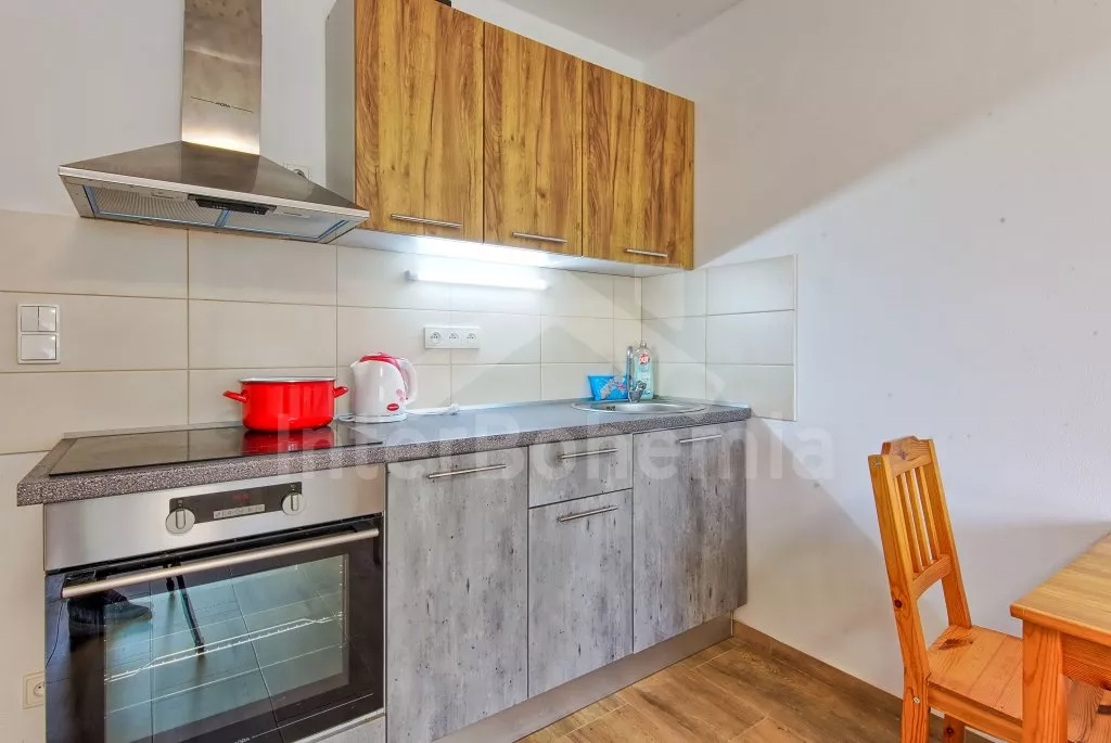 Obýváte nově zrekonstruovaný apartmán (2020) v přízemí rodinného domu. Vstup ze společné chodby. Kuchyně s keramickou varnou deskou, troubou, varnou konvicí, mikrovlnnou troubou, lednicí, mrazákem a… Více informací