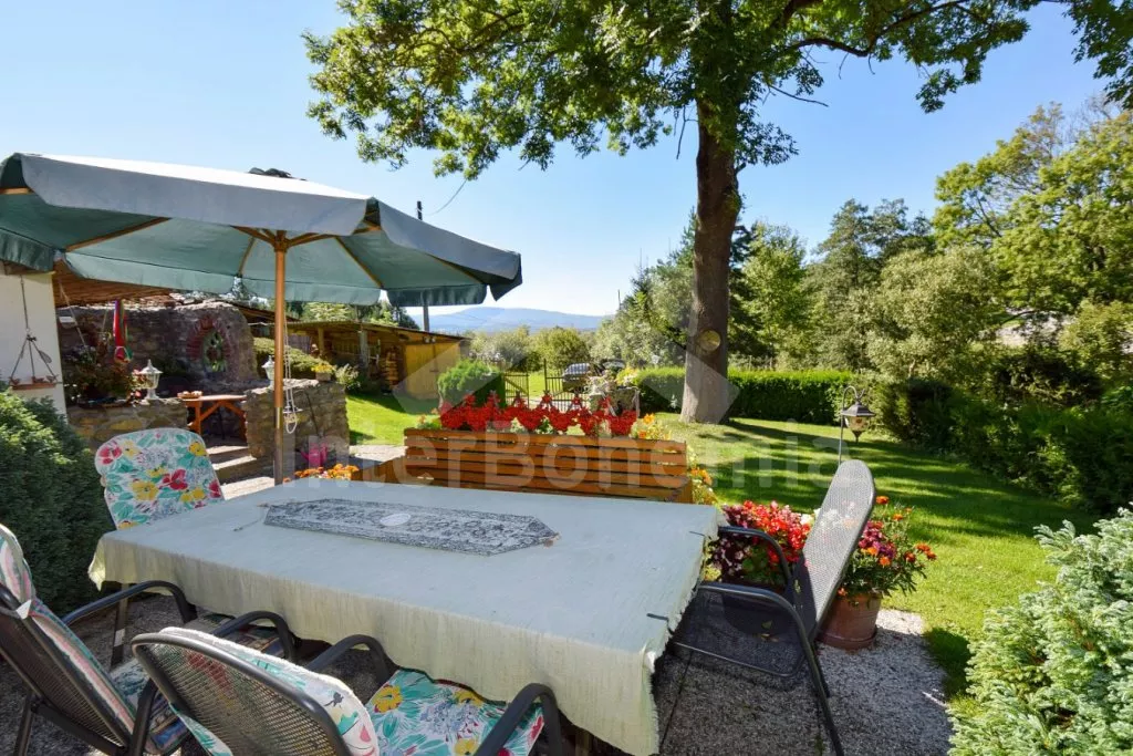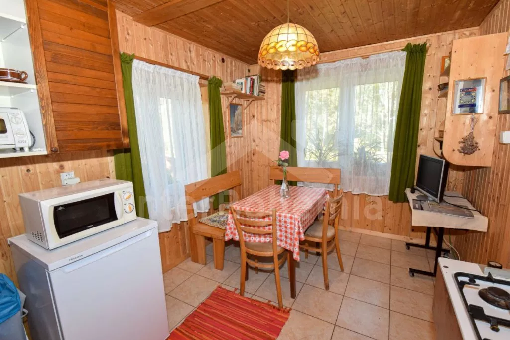 Apartmá A – přízemí: Vstup, chodba, ložnice se dvěma samostatnými lůžky, koupelna se sprchou a toaletou, druhá ložnice s dvojlůžkem, jedním samostatným lůžkem a televizí. Dále kuchyně s jídelní stolem, čtyřmi plynovými varnými plotýnkami, lednicí, kávovarem a varnou konvicí. Všechny místnosti jsou průchozí. Vytápění kamny na dřevo. Pro obě apartmá je společná místnost s jídelním stolem se vstupem z terasy a samostatné WC. Možnost používat prostornou zahradu, dřevěný zahradní nábytek se slunečníkem, zahradní krb, ohniště, pískoviště, houpačku a kulatý bazén o průměru 3,6 m. Vlastní parkoviště.