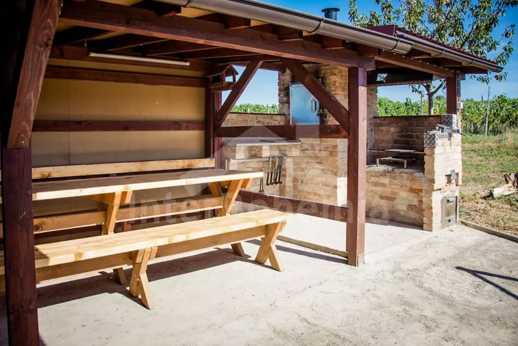 Apartmán lze v případě potřeby vytápět elektrickým topením. Hosté mají k dispozici společnou krytou terasu s posezením, zahradním grilem, krbem a přímým výhledem na vinici. Druhé posezení před domem. Parkování přímo u objektu.
