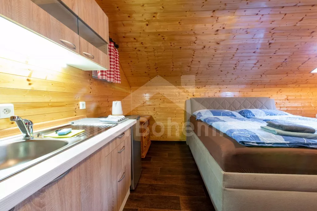 Domácí zvířata povolena za poplatek (300,- Kč/zvíře/noc). V ceně pobytu zahrnuto Wi-Fi připojení, lůžkoviny, ručníky a spotřeba energie. Vratná kauce 5 000,- Kč. Veřejné a vnější prostory jsou pro větší bezpečnost hostů monitorovány kamerovým systémem. Apartmán je vhodný pro 4 osoby. Možnost objednání celého objektu pod kódem JM 0114.