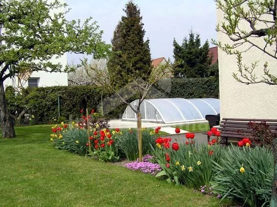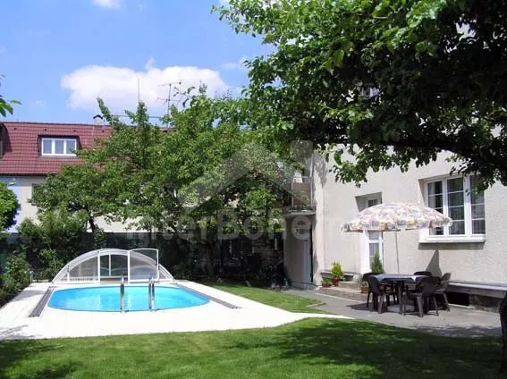 Obýváte útulně zařízené apartmá v prvním patře přístavby k volně stojící poválečné vile. Vlastní vchod ze zahrady. Vstup do malé haly, kuchyně se dvěma elektrickými varnými plotýnkami a lednicí. Schody do patra. Malá hala s kuchyňkou, pokoj se dvěma samostatnými lůžky (možné spojit jako dvojlůžko), stolem pro 4 osoby a televizí se satelitním příjmem. Další pokoj s dvěma samostatnými lůžky, malým psacím stolem a balkónem. Koupelna se sprchou, umyvadlem a toaletou. Ústřední topení. Vila stojí v oplocené zahradě, kterou můžete používat. K dispozici je též zahradní nábytek se slunečníkem a hezký zapuštěný bazén 3 x 7 m se zastřešením. Parkování v zahradě (za poplatek) nebo před domem.
