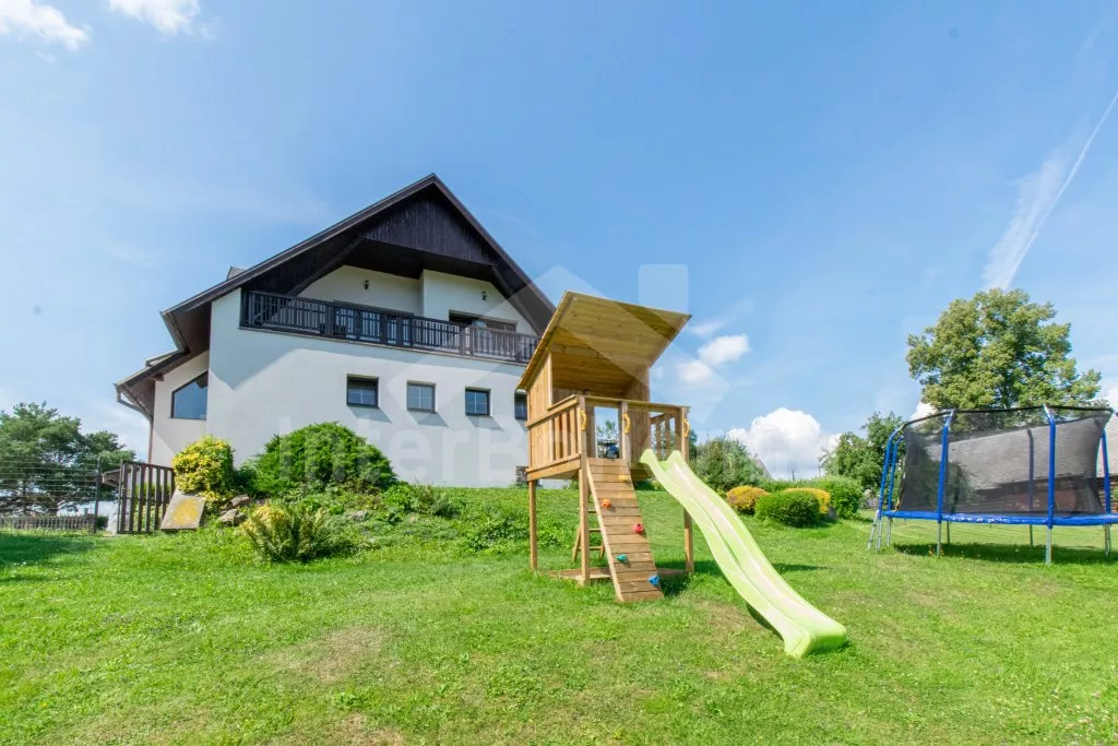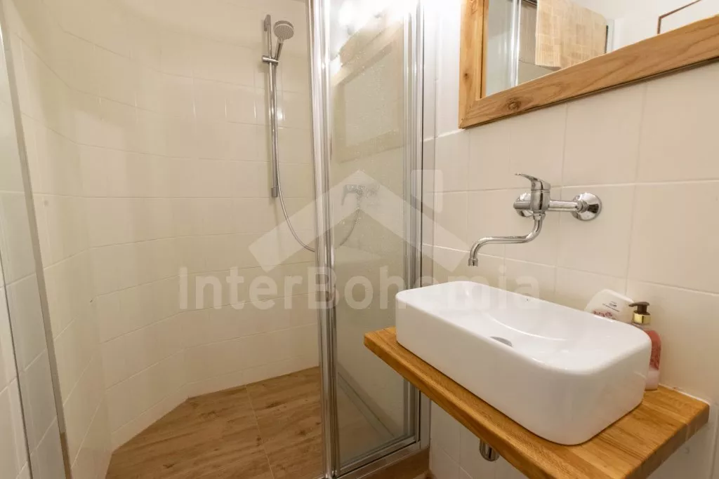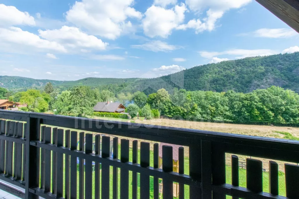 Obýváte útulný apartmán s vlastním vchodem, oplocenou zahradou a terasou s nádherným výhledem na přehradu. Vstup po schodišti, chodba, kuchyně s jídelním stolem pro 5 osob a kuchyňskou linkou se sklokeramickou deskou, troubou, mikrovlnnou troubou, lednicí s mrazákem, rychlovarnou konvicí a nádobím. Obývací pokoj se sedací soupravou (extra jednolůžko), LCD televizí a vstupem na terasu se zahradním grilem a venkovním posezením. První ložnice s dvoulůžkem. Druhá ložnice také s dvoulůžkem. Koupelna se sprchou a umyvadlem. Samostatné WC se vstupem z koupelny. Vytápění objektu dřevem. Parkování u domu až pro 4 vozidla.
