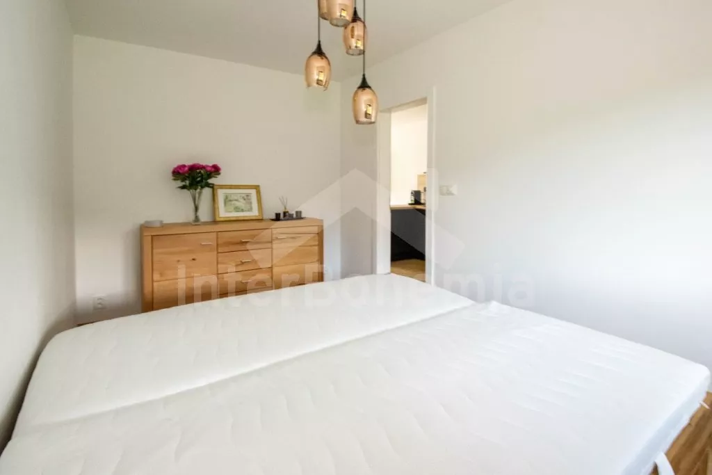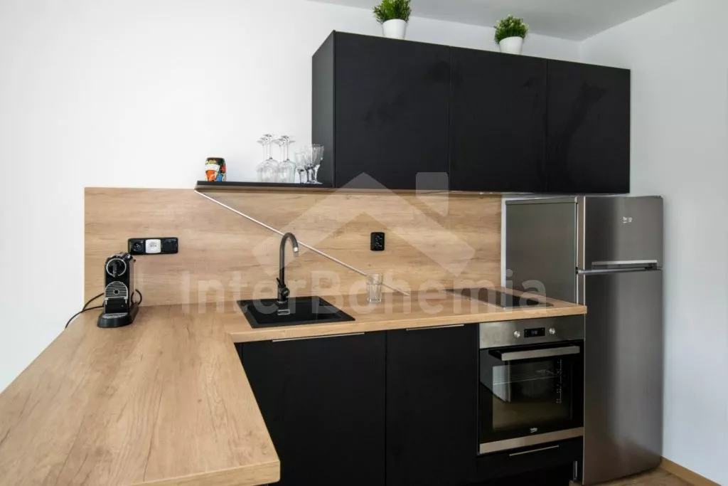 Nově a čistě zařízený apartmán v přízemí, po rekonstrukci v roce 2021. Obývací pokoj s pohovkou, jídelním stolem, nástěnnou televizí a francouzským oknem, které místnosti zajišťuje dostatek světla. Kuchyňský kout se sklokeramickou deskou, troubou, lednicí s mrazákem a kávovarem. Samostatná ložnice s dvoulůžkem. Koupelna se sprchovým koutem, umyvadlem a WC. Podlahové vytápění objektu. Parkování přímo u domu.