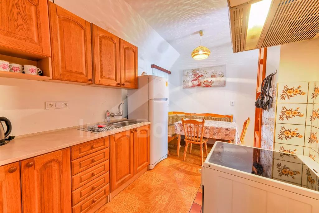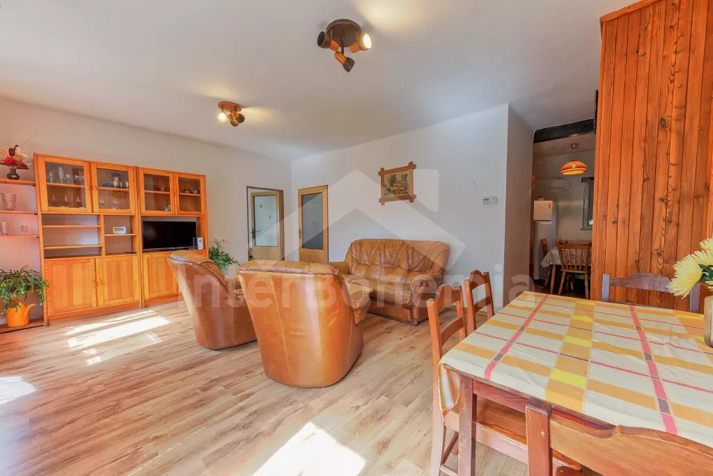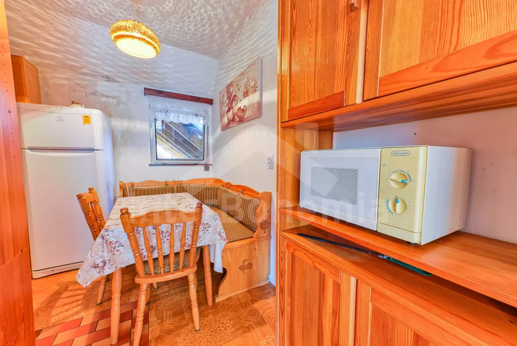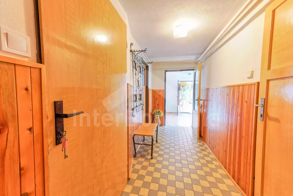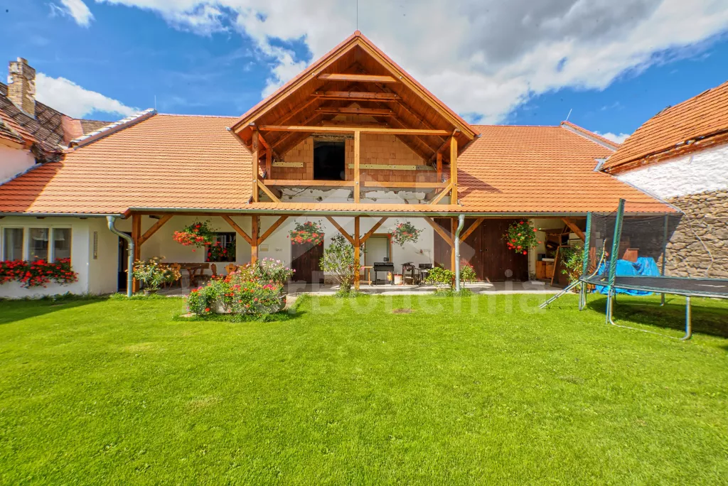 Obýváte apartmá s vlastním vchodem v prvním patře starší usedlosti (bývalý statek) s hospodářskými budovami obklopujícími uzavřený vnitřní dvůr. V přízemní části statku bydlí babička pronajímatele. Vy i Vaše děti možnost vyzkoušet si skutečný život na venkově – můžete krmit a starat se o kozy, ovce a další zvířata, třeba koně. Apartmá je velmi hezky, vkusně a pohodlně zařízeno. Vstup přes verandu, chodba a schody do patra. Zde se nachází prostorný obývací pokoj se sedací soupravou, jídelním stolem pro 4 osoby, televizí a rádiem. Kuchyně s jídelním koutem pro 3 osoby, elektrickým sporákem, lednicí, varnou konvicí a mikrovlnnou troubou. Koupelna s vanou, samostatná toaleta. Tři ložnice – v první a druhé ložnici 1x dvoulůžko a 1x jednolůžko, ve třetí ložnici 3x jednolůžko. Po dohodě a za příplatek možnost přistýlek. Elektrické topení. Uzavřený vnitřní dvůr s posezením, přenosným grilem nebo grilem. Kolem statku je zahrada. Vlastní parkoviště.