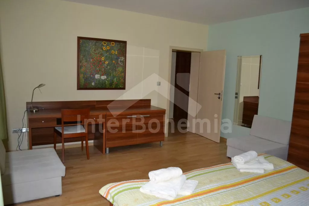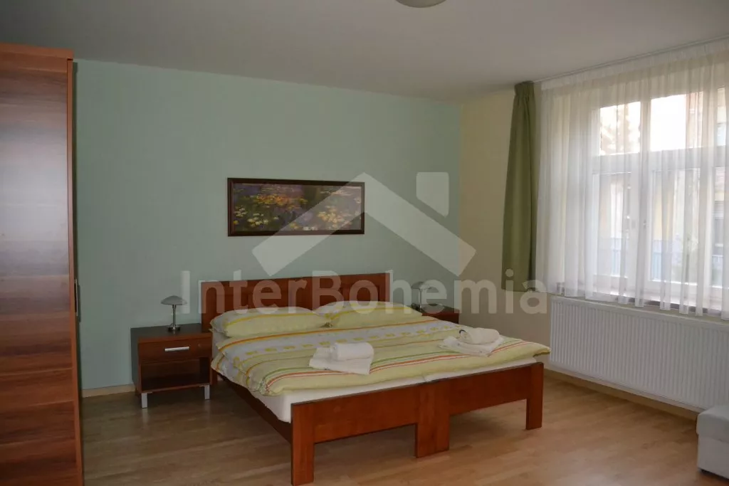 Freistehende, imposante Villa aus dreiziger Jahren, sehr gefühlsmässig renoviert. Zur Verfügung stehen alle mögliche Errungenschaften und Sie sind von Luxus umschlossen. Ganzes Haus ist in drei Appartements geteilt mit einigen Räumen gemeinsam. Alle drei Appartements werden vermietet (Häuser SM 0010, SM 0011 und SM 0012). Eingang einige Treppe auf, aber zur Verfügung steht auch speziale Rampe für körperbehinderten Personen. Erdgeschoss. Wohnzimmer mit Couch (zugleich ein Klappdoppelbett), Esstisch und Sat-TV. Moderne offene Küche mit Bar, zwei keramischen Kochplatten, multifunktionale Röhre mit Mikrowelle und Grill, Kühlschrank, Geschirrspülmaschine und Schnellkochkanne. Luxusbadezimmer mit Dusche und Toilette. Schlafzimmer mit einem Doppelbett und einem Klappextrabett. Gaszentralheizung, zum Teil Bodenheizung. In Oberstock befindet sich Gemeinschaftsraum mit Waschmaschine, Trommeltrockner, Bügelbrett und Bügeleisen. Im Souterrain ist Gesellschaftsraum mit Gaskamin und Sitz, kleine Küche, Dusche und Toilette. Villa steht in umzäuntem Garten, Einfahrt hat automatischgesteuertes Tor. Im Oberstock haben Sie grosse Terrasse mit Markise zur Verfügung. In grossem Garten ist absolute Ruhe und Privatheit, es steht hier überdachte Gartenlaube mit Gartenmöbel und Gartenkamin. Garage, überdachter Standplatz für 3 Autos und andere zwei Parkplätze.