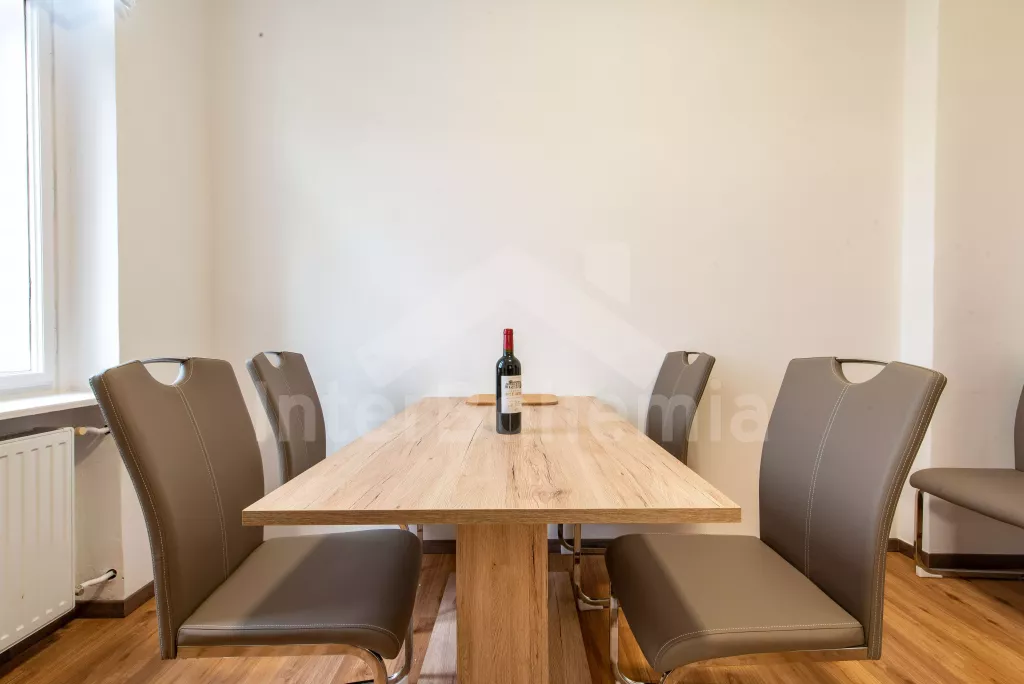 Schöne Wohnung im ersten Stock einer noblen Villa, die in 2022 modern und geschmackvoll renoviert wurde. Küche mit Cerankochfeld, Mikrowelle, Kühlschrank, Wasserkocher und Esstisch. Wohnzimmer mit Sofagarnitur (zusätzliches Doppelbett), Sesseln, Wandfernseher und Zugang zur Terrasse mit Blick auf den Garten. Ein Schlafzimmer mit einem Doppelbett und einem Etagenbett mit zwei Matratzen. Badezimmer mit Dusche, Waschbecken und Toilette. Alle Zimmer der Unterkunft sind sehr geräumig und sauber. Alle Fenster haben einen schönen Blick auf den Garten. Zentralheizung des Gebäudes. Ein riesiger privater Schlossgarten steht zur Verfügung (wird nur mit der zweiten Wohnung und einem weiteren Haus am gegenüberliegenden Ende des Grundstücks geteilt. Beide können unter den Codes JC 0460 und JC 0461 gemietet werden. Außensauna nach Vereinbarung verfügbar. Parkplatz direkt neben dem Haus. Fahrradabstellmöglichkeit.