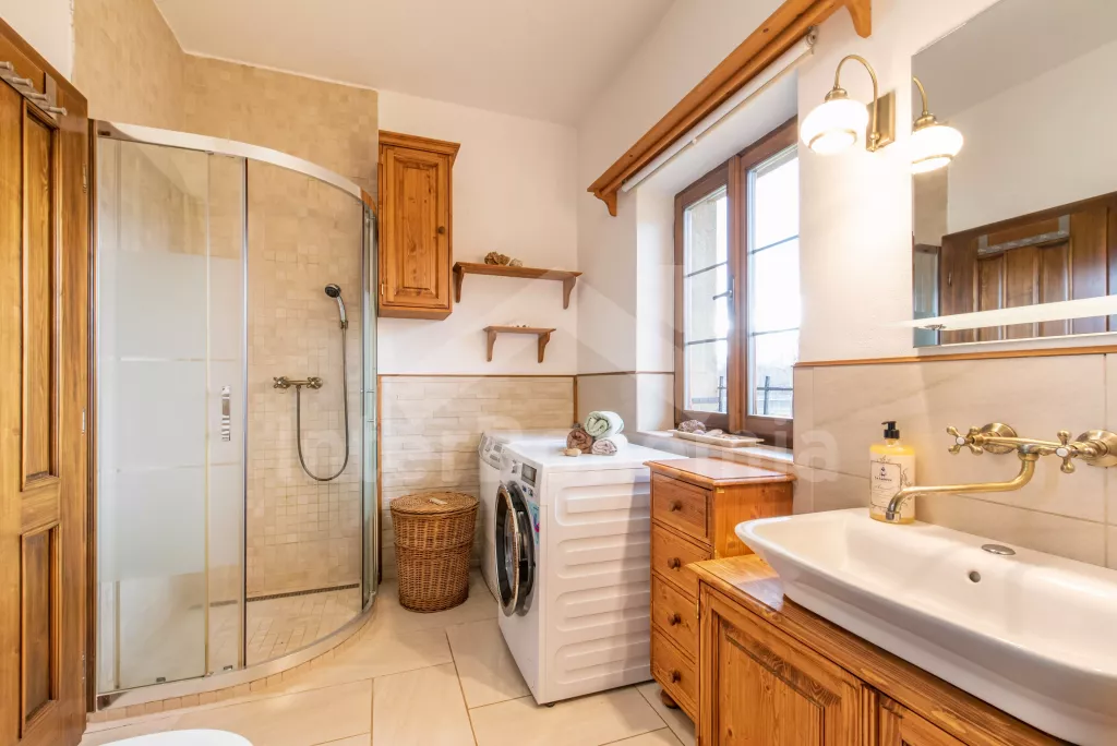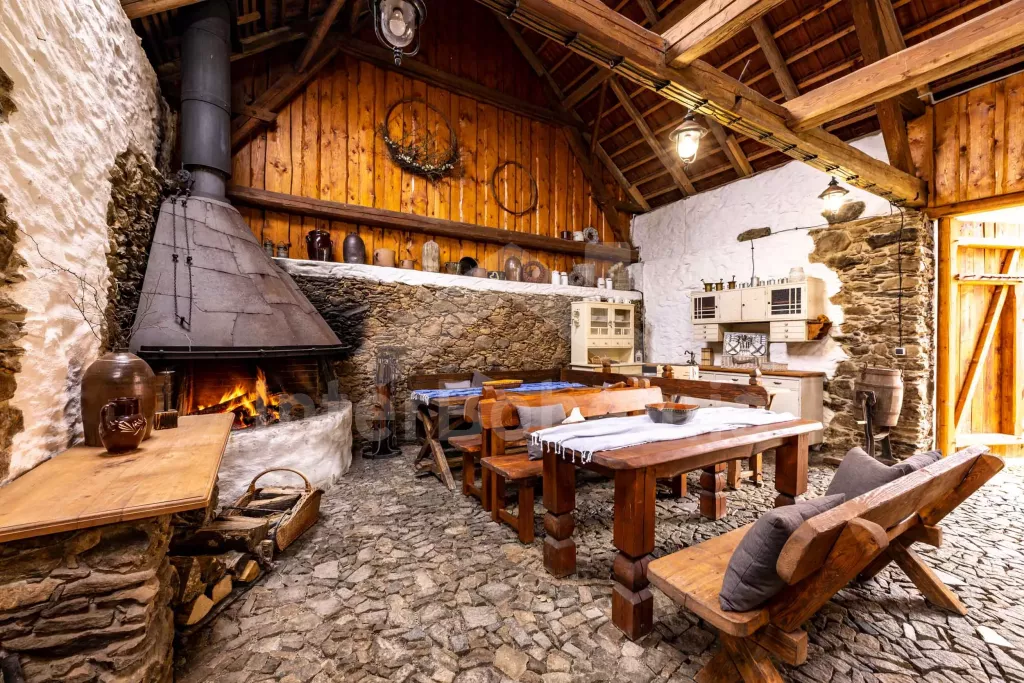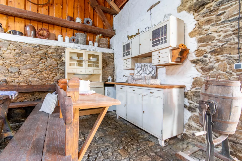 Stilvoll renoviertes, abgelegenes Gehöft mit eigenem Teich, Sauna, Pergola und Swimmingpool. Eingang durch einen geschlossenen Innenhof. Der Gemeinschaftsraum mit Küche verfügt über ein Klappsofa (2x Zustellbett), TV, Couchtisch, Esstische für 14 Personen und schöne antike Dekoration. Kachelofen mit Küchenzeile mit Backofen, Cerankochfeld, Kapselkaffeemaschine, Wasserkocher, sämtlicher Kochutensilien, Kühlschrank und Geschirrspüler. Ein Schlafzimmer im Erdgeschoss mit einem riesigen Doppelbett und einem privaten Badezimmer mit Dusche, Waschbecken, Bidet, Toilette, Waschmaschine und Trockner. Im Obergeschoss befinden sich Sauna, Badezimmer und insgesamt vier Schlafzimmer. Das erste mit einem Doppelbett und einem Schreibtisch. Das zweite mit einem Doppelbett, einem Einzelbett, einem Schlafsofa für 2 Personen und einem Ankleidezimmer. Drittes Schlafzimmer mit 3 Einzelbetten. Viertes mit 4 Betten + 2 Zustellbetten. Badezimmer mit Dusche, Waschbecken, Bidet und Toilette. Eine geräumige Scheune mit Kamin und Kochnische, ideal zum abendlichen Beisammensein oder für die Organisation verschiedener Feiern. Gartenholztische zum Sitzen, Schlagzeug und Darts. Ebenfalls erhältlich sind ein aufblasbarer Whirlpool und ein oberirdischer Pool (verfügbar ab Mai). Für Kinder gibt es auf dem weitläufigen Gelände ein Trampolin, Schaukeln und einen kleinen Teich. Parkplatz vor dem Gebäude für bis zu 5 Autos.