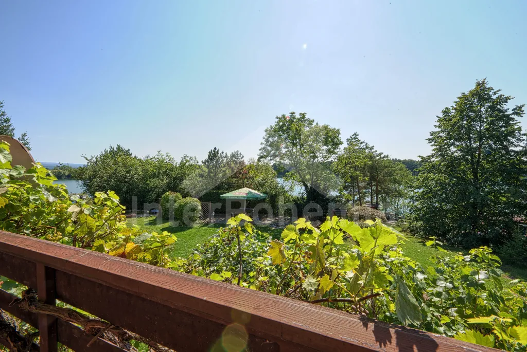 Vrijstaand chalet op een royaal grondstuk, ruim opgezet, comfortabel ingericht en zeer goed verzorgd. Entrée, gang, ruime woonkamer met eettafel en stoelen voor 14 personen, royale open haard, flatscreen TV met satelliet ontvangst en toegang tot het terras met pergola. Open toegang tot de keuken met o.a. koel/vries combinatie, electrisch fornuis met keramische kookplaat en hetelucht oven, waterkoker en magnetron. Badkamer met douche en wastafel, twee toiletten apart. Boven is een gang met een noodbed, slaapkamer met een tweepersoons en een éénpersoons bed en zitje en een slaapkamer met twee tweepersoons bedden en zitje. Op de dakverdieping is een slaapkamer met drie éénpersoons bedden en zitje en een slaapkamer met twee tweepersoons bedden en zitje. Elektrische verwarming. Royale, omheinde tuin met drie terassen waarvan een met een pergola, houten tafels en banken, parasol, mogelijkheid tot barbecuen, speenvarken roosteren, rookplaats en kampvuurplaats. Vanaf de tuin is er een poort naar het meer met strand. Voldoende parkeerruimte in de tuin.