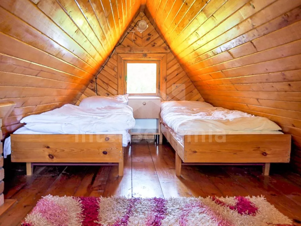 Bakstenen huisje met een balkon met uitzicht over het landschap en het nabijgelegen bos. Op de begane grond is een zithoek, open haard en een kitchenette met 2 kookplaten, magnetron, koelkast en waterkoker. Badkamer met douche, wastafel en toilet. Op de eerste verdieping slaapkamer met twee tweepersoonsbedden en toegang tot het balkon. Op de dakverdieping een tweede kleinere slaapkamer met twee éénpersoonsbedden. Verwarming middels de open haard. Buiten zitten en kamvuurplaats in de niet-omheinde tuin. Parkeren direct bij het huisje.