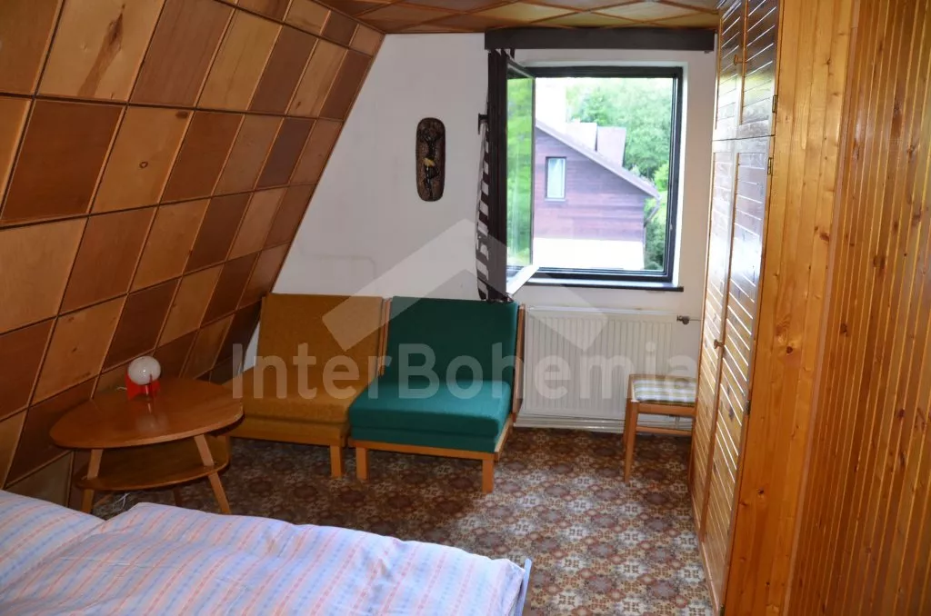 Dieser Bungalow hat wirklich eine fantastische Lage! In Südböhmen, am Wald, direkt am Ufer des Erholungsteiches „Komornik“, in dem Sie baden und Wassersporte treiben können. Bungalow steht am Rande einer angenehmen Feriensiedlung, ca. 2 km nördlich von dem Städtchen Kunzak, etwa 17 km östlich von Stadt Jindrichuv Hradec und nur 19 km von der Grenze zu Österreich. Sehr ruhiger Platz mit fantastischer Aussicht auf den Teich und Wald. Ideal zum Ausruhen, Baden, Wandern, Radfahren und Unternehmen von den verschiedensten Ausflügen in die Umgebung. Ganzes Gebiet ist reich an Teichen und Wälder und es befinden sich hier auch viele kulturelle und historische Sehenswürdigkeiten. Z. B. historische Stadt und Schloss Jindrichuv Hradec 17 km, Stadt und Schloss Telc (unter dem Denkmalschutz von UNESCO) 25 km, Schloss Zirovnice 18 km, Schloss und schönes Städtchen Dacice 21 km, Burgruine Landstejn 17 km.