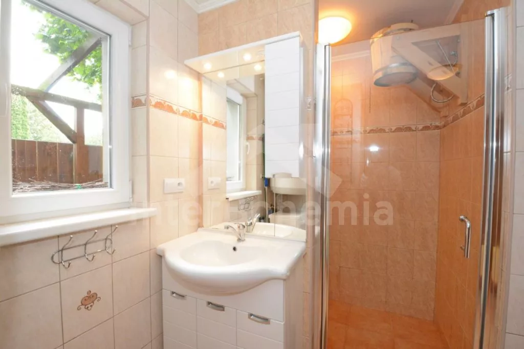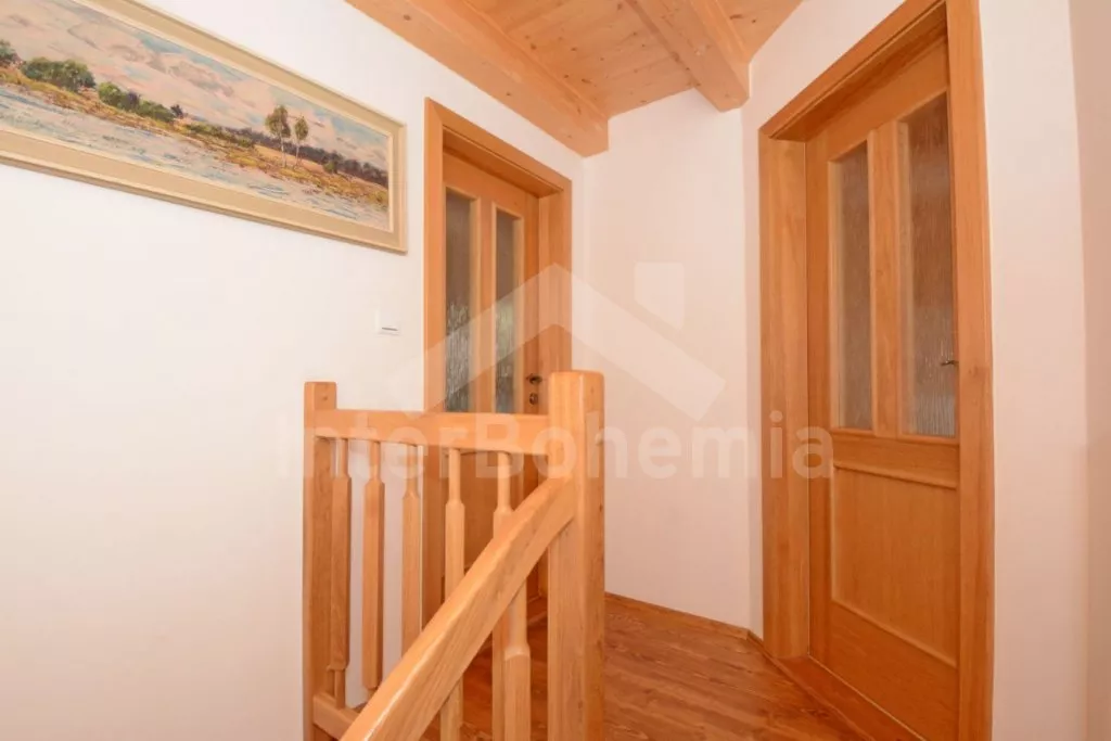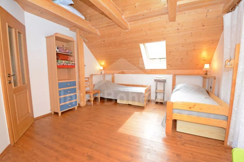 In west Bohemen, vrijwel aan de oever van het stuwmeer Jesenice (15 m), ongeveer 6 km ten zuidoosten van het kuuroord Cheb. Het huis is gelegen in een rustig recreatiegebied bij het stuwmeer, een ideale plek om te zwemmen, vissen en ontspanning. U kunt vanuit hier de burcht in Cheb (10 km), het stadsmuseum Františkovy Lázně (21 km) of het kasteel Kynžvart (31 km) bezoeken. Overdekt zwembad, sauna en tennis 14 km. Kinderen zullen het kabelcenter (9 km) en het America bospark (14 km) waarderen. Het gebied is uitzonderlijk voor golfliefhebbers, bezoek Golf Club Františkovy Lázně (22 km) of Royal Golf Club Mariánské Lázně (39 km), een van de mooiste golfbanen in Tsjechië. Vissen (met vergunning) 15 m. Strand 15 m.