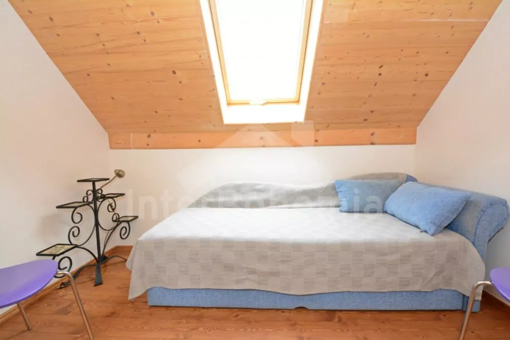 Vrijstaand luxe vakantiehuis in de eigen omheinde tuin, in 2015 zeer mooi gerenoveerd. Entrée, woonkamer verbonden met keuken. Keuken met tweepits keramische kookplaat, oven, magnetron, koelkast met vriezer, waterkoker, servies en vaatwasser. Woonkamer met eettafel voor 8 personen, zithoek (uitbreidbaar tot extra bed voor 2 personen) en open haard. Op de verdieping vindt u twee slaapkamers. Eerste slaapkamer met twee éénpersoonsbedden, tweepersoonsslaapbank en terras. Tweede slaapkamer met slaapbank voor twee personen, zithoek (uitklapbaar tot een bed voor 2 personen) en middels een steile laddertrap toegang tot de dakverdieping met een extra slaapkamer met twee éénpersoonsbedden (geschikt voor kinderen tot 18 jaar). Op de begane grond is een ruime badkamer met douche, wastafel, apart toilet en houtgestookte sauna. Centrale elektrische verwarming + stoken middels de open haard met warme lucht distributie. U beschikt over de tuin met meubelen op het overdekte terras, draagbare barbecue, voor de kinderen i ser een trampoline. Parkeren aan huis voor 2 auto's.