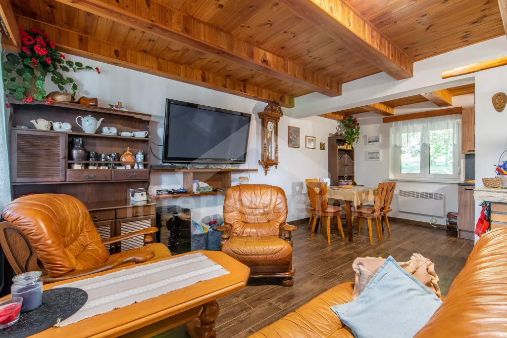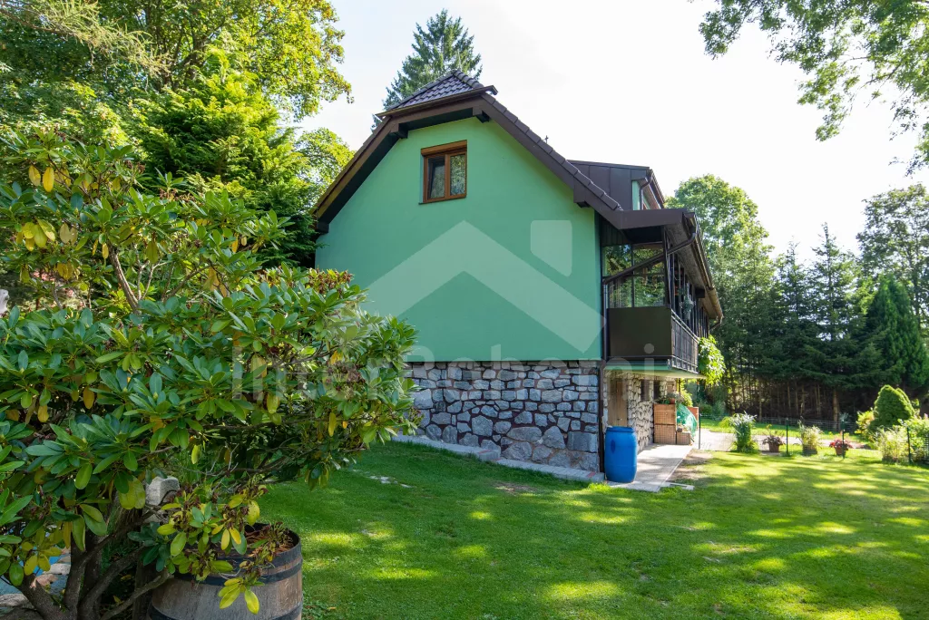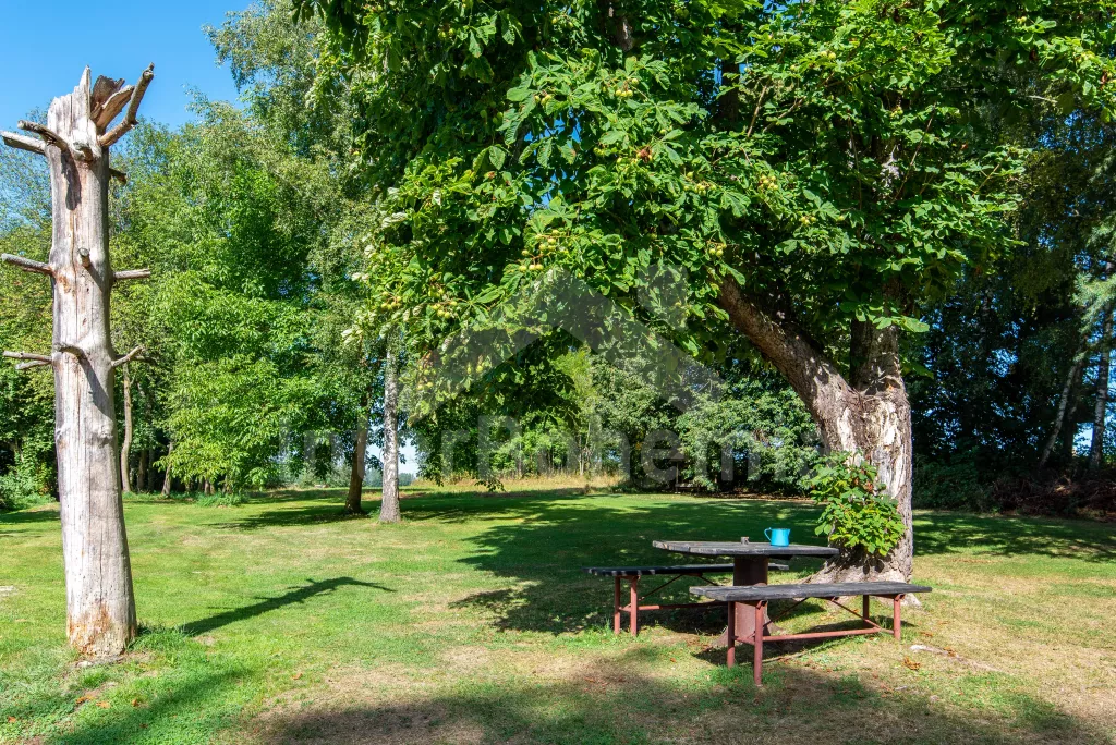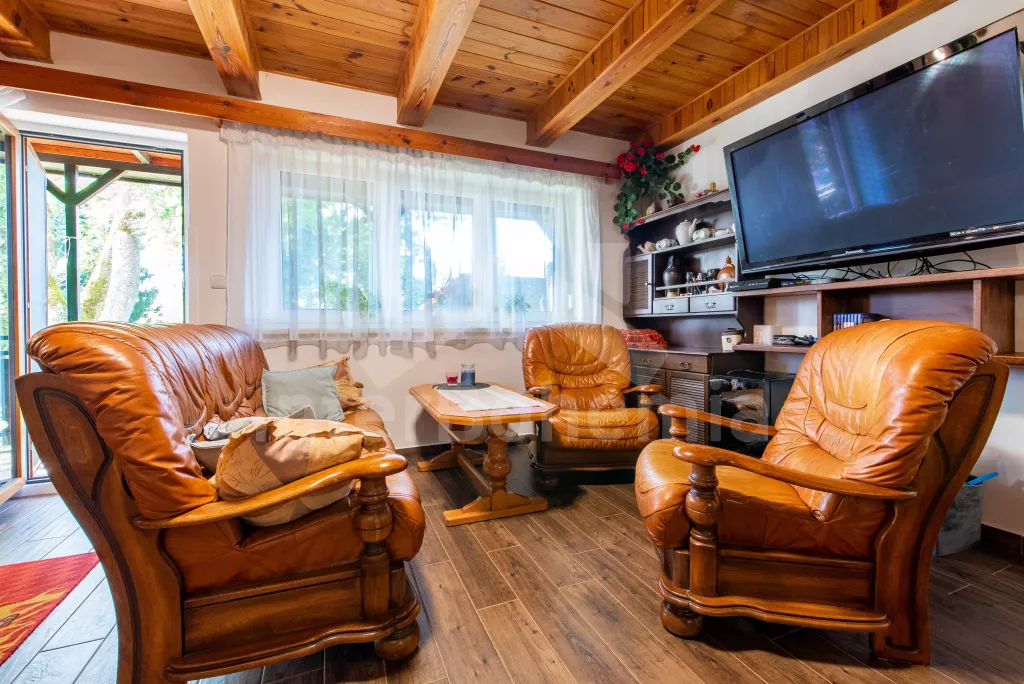 Een bakstenen huisje, gerenoveerd in 2023, met een tuin bij een klein bos, zitgelegenheid buiten en een terras. Op de verhoogde begane grond, woonkamer met leren bank, tv met dvd en spelcomputer, open haard en eettafel. Nieuwe kitchenette met keramische kookplaat, oven, magnetron, koel-vriescombinatie, koffiezetapparaat en waterkoker. Toegang tot het terras vanuit de woonkamer. Badkamer met douche en wastafel. Apart toilet. Op de zolder een doorloopkamer met een eenpersoonsbed en een bureau, van waaruit toegang is tot de tweede slaapkamer met vier eenpersoonsbedden en een tweepersoonsbed. Verwarming met elektrische directe kachels en openhaardkachels. Mogelijkheid om ski's en fietsen op te slaan in de garage. Er is een technische ruimte met een wasmachine, een plek om vis te koken en een koelkast voor het bewaren van de vangsten. Gasten kunnen gebruikmaken van de tuin met zitplaatsen buiten, een vuurplaats en grill, en een ruimte voor balspelen. Parkeren voor maximaal 3 voertuigen direct boven het huisje.