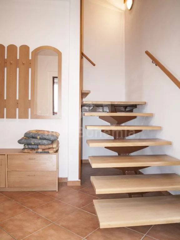 Sie bewohnen eine Hälfte des Wochenendhauses, das im Jahre 2007 neu gebaut wurde. Wochenendhaus ist sehr schön und bequem eingerichtet. Die zweite Hälfte besitzt ein anderer Eigentümer. Eingang, Wohnzimmer mit Sofa und zwei Sesseln, Kaminofen, Esstisch für 5 Personen und TV. Offene Küche mit Cerankochfeld und -herd, Mikrowelle und Wasserkocher. Kühlschrank mit Gefriertruhe befindet sich im Flur. Badezimmer mit Dusche und Toilette. Im Dachgeschoss sind zwei Schlafzimmer – das erste mit einem Doppelbett und einem Einzelbett und das zweite mit einem Doppelbett. Heizung mit Kaminofen. Das Wochenendhaus steht auf einem nicht umzäunten Grundstück, zur Verfügung steht Gartenmöbel und Grill. Parken auf dem Grundstück beim Haus.