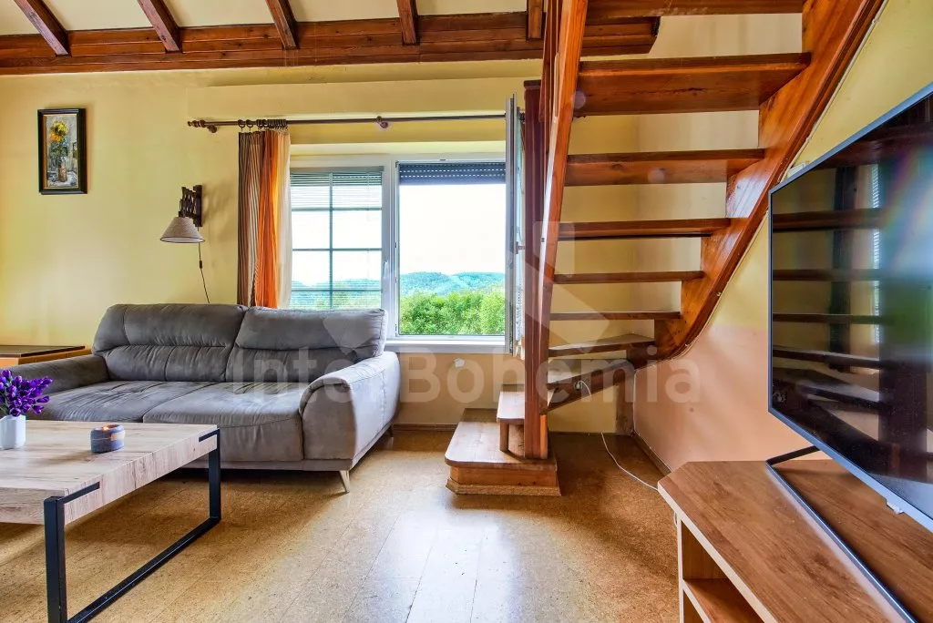 Im Mittelböhmen, im Feriendorf Trhovky, 300 m vom Stausee Orlík entfernt. Das Haus steht an einem leichten Hang und bietet einen schönen Blick ins Grüne und teilweise auf den Stausee. Die ruhige Umgebung eignet sich besonders für Familien mit Kindern.