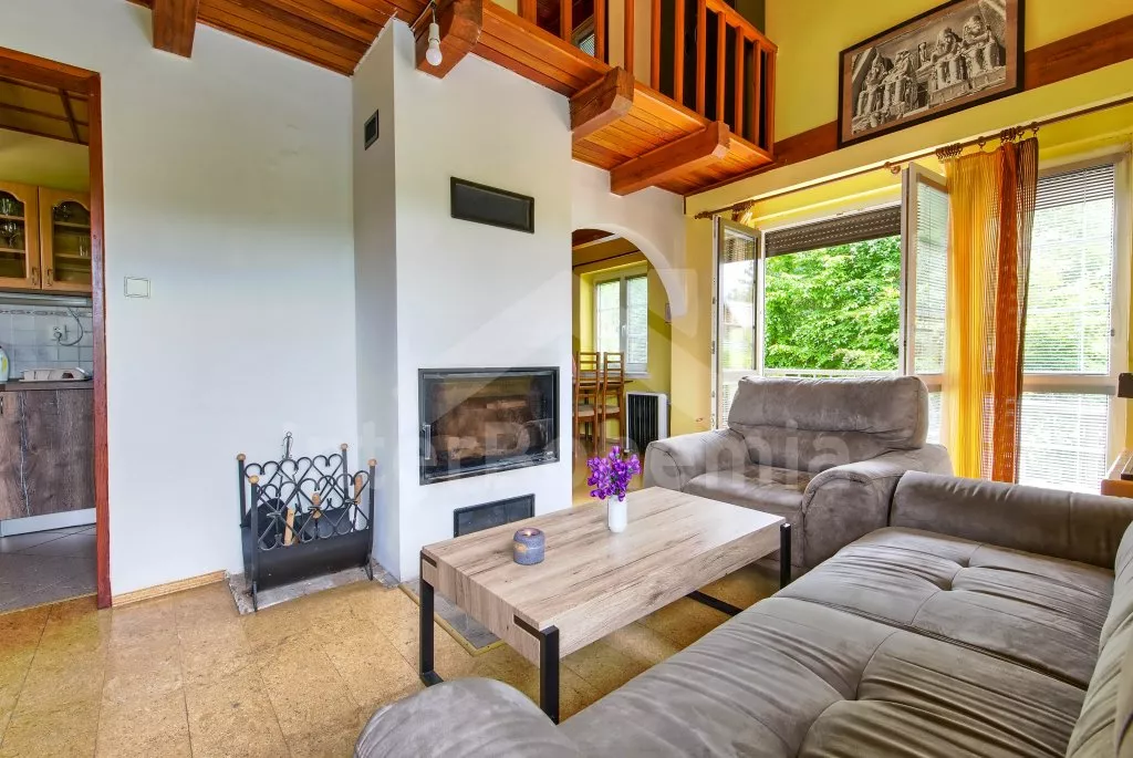 Freistehendes Ferienhaus auf einem eigenen eingezäunten Grundstück. Eingang über Hochparterre, Esszimmer mit Esstisch für 5 Personen, Wohnzimmer mit Sitzecke für 4 Personen (Klappdoppelbett), Kamin und LED-TV. Zugang zur Terrasse vom Wohnzimmer aus. Küche mit Ceranfeld, Mikrowelle, Kühl- / Gefrierschrank, Kaffeemaschine und Wasserkocher. Badezimmer mit Dusche, Waschbecken und Toilette. Im Obergeschoss befindet sich ein Schlafzimmer mit einem Doppelbett und einem kleineren Bett (geeignet für ein Kind unter 12 Jahren), ein zweites Schlafzimmer mit einem Doppelbett, einem kleineren Bett (geeignet für ein Kind unter 12 Jahren), TV und Balkon. Elektroheizung. Sie können herrlich auf der Terrasse sitzen. Es gibt einen Lagerfeuerplatz im Garten. Parkplatz für bis zu 4 Fahrzeuge biem Haus.